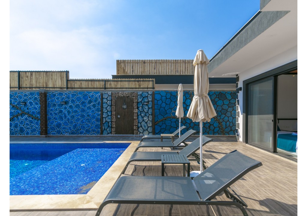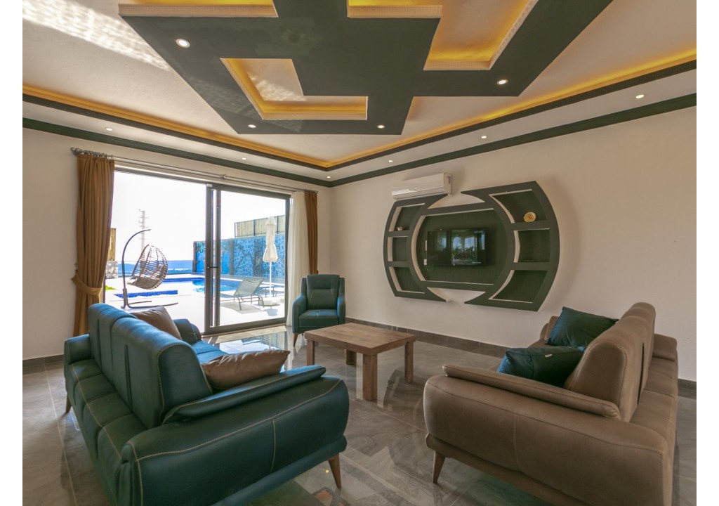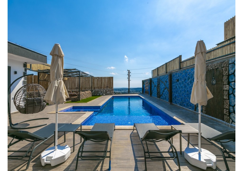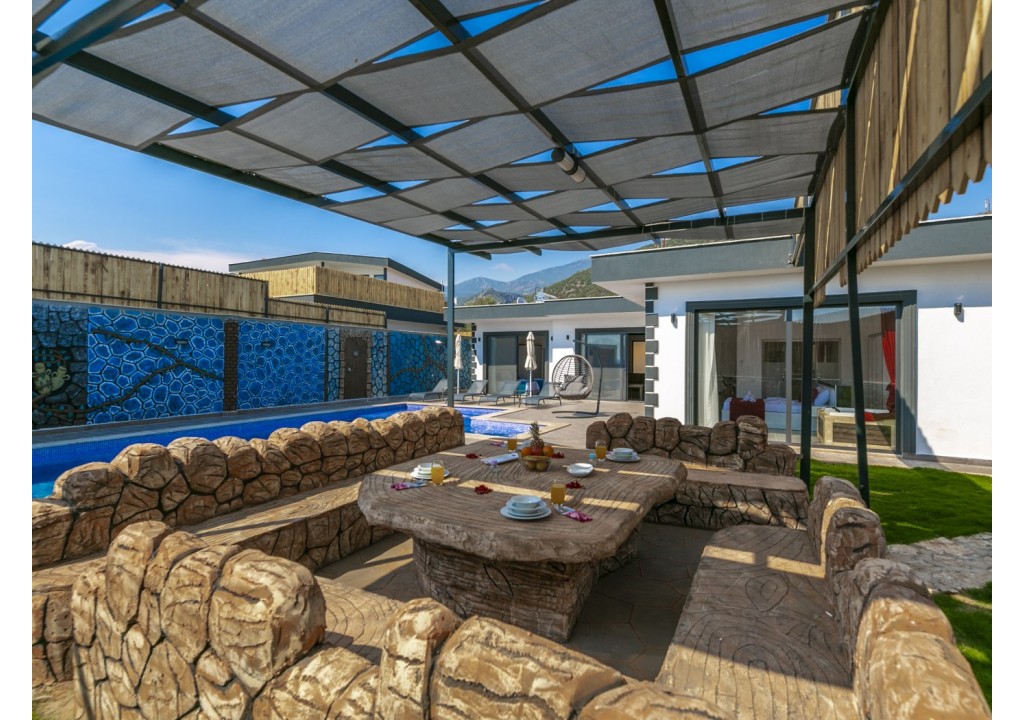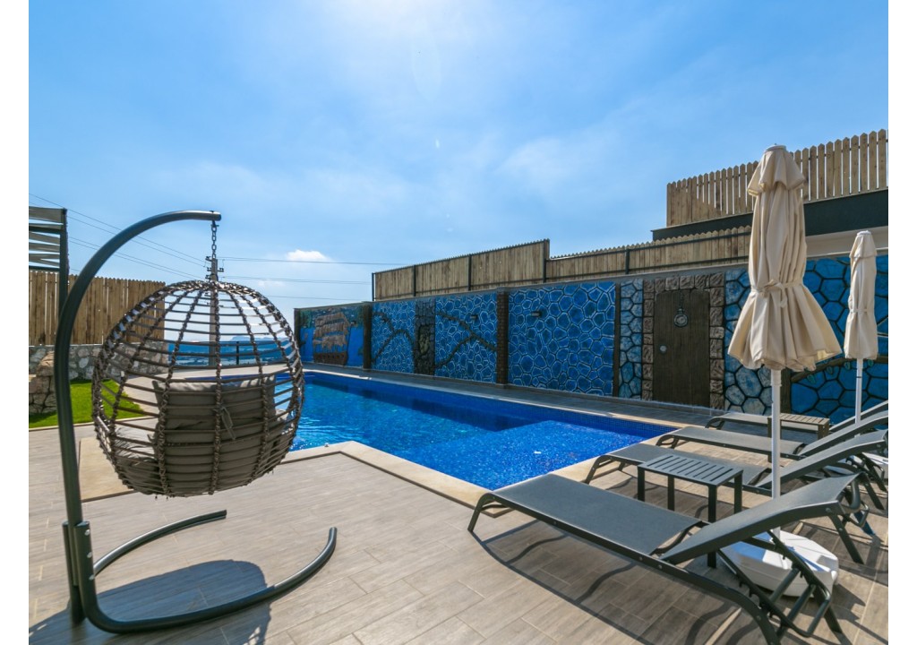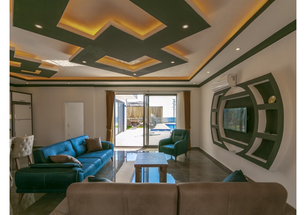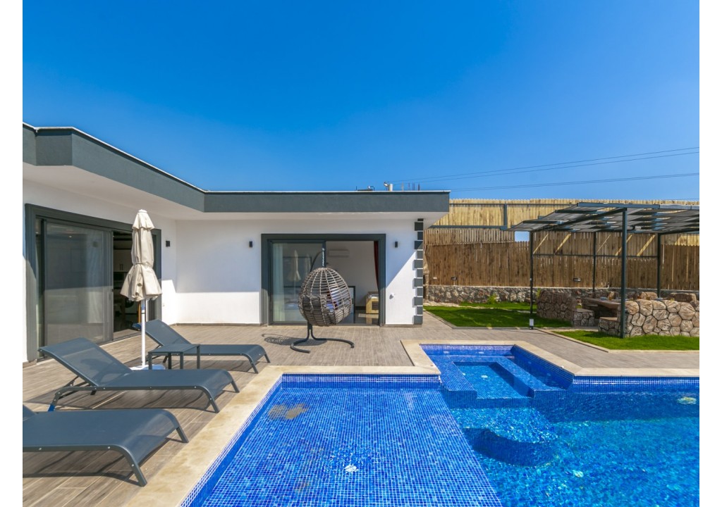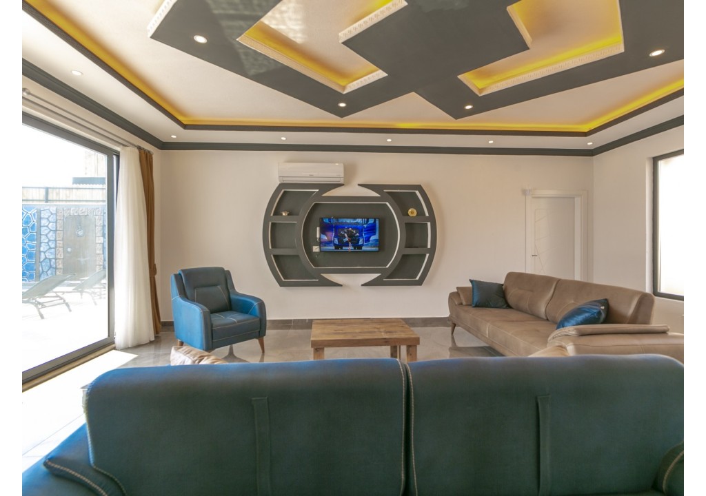 Detayları; Oturma grubu, Uydu TV (LCD), Klima, 4 kişilik yemek masası, Havuz terasına çıkış,