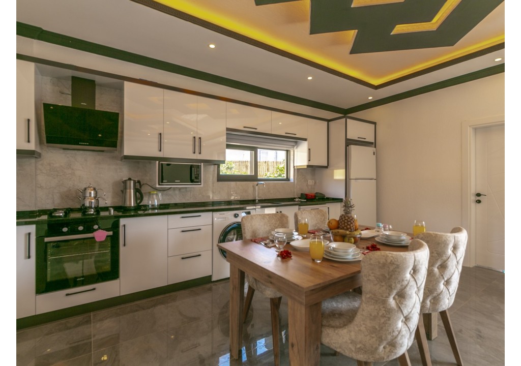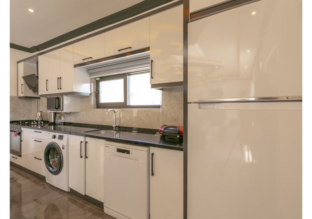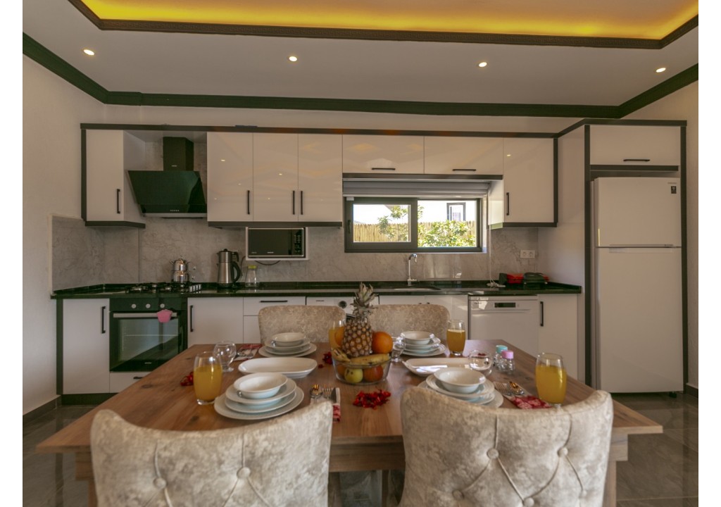 Detayları; Buz dolabı, Bulaşık makinesi, Fırın 4’lü Ocak (ankastre), Mikrodalga fırın, Elektrikli su ısıtıcı, 4 kişilik yemek takımı, Tava, Tencereler, Çatal bıçak vb.