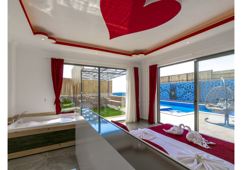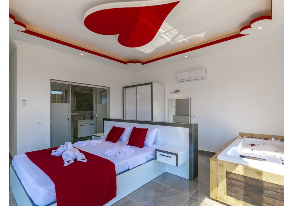 Detayları; Çift kişilik yatak, makyaj masası, komidin, klima, elbise dolabı, jakuzi, banyo ve tuvalet bulunmaktadır.