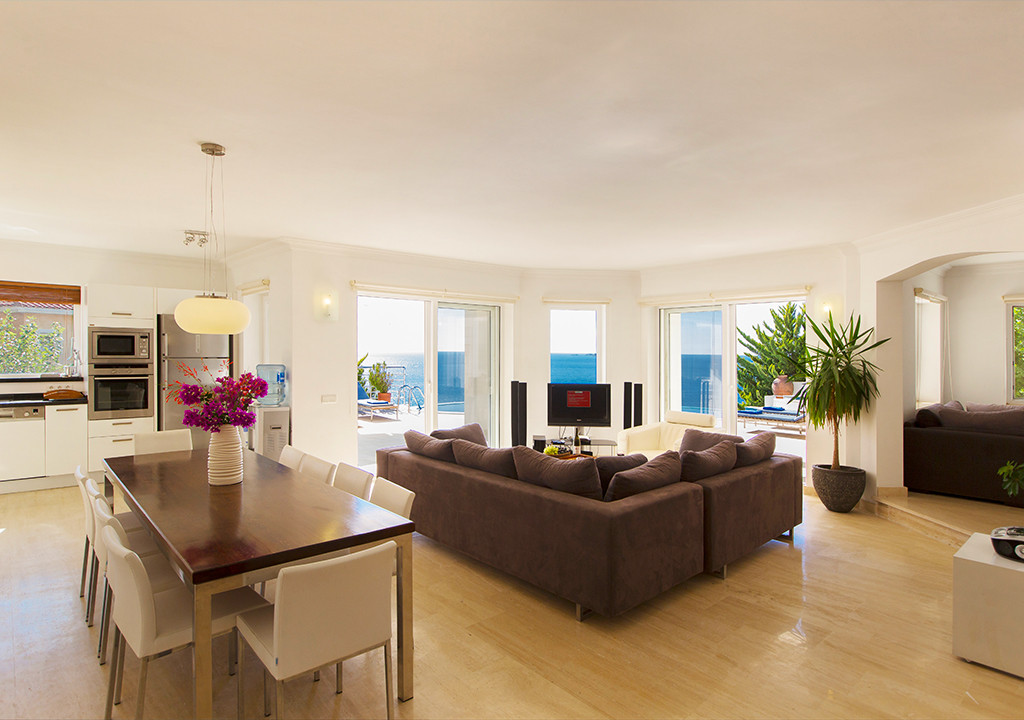 Detayları; Oturma grubu, Uydu TV (LCD), Klima, 10 kişilik yemek masası, Havuz terasına çıkış,