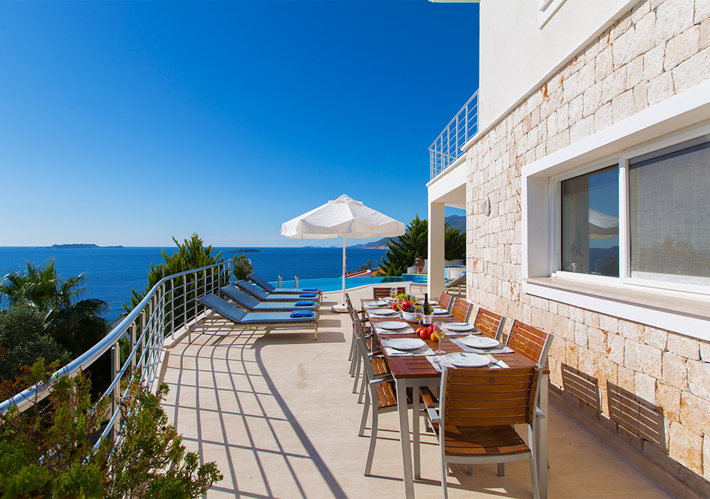 Kaş’ın Çukurbağ mevkiine konumlandırılmış olan muhteşem manzaraya sahip Villa İndigo 5 yatak odalı bir villadır.