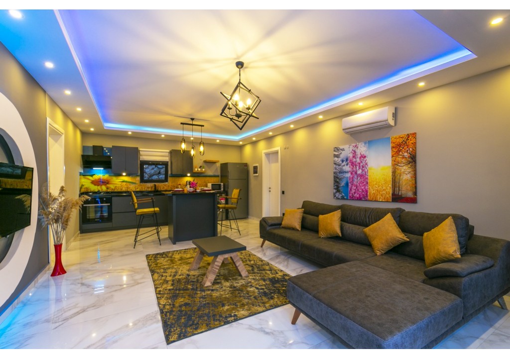 Detayları; Oturma grubu, Uydu TV (LCD), Klima, 2 kişilik yemek masası, Havuz terasına çıkış