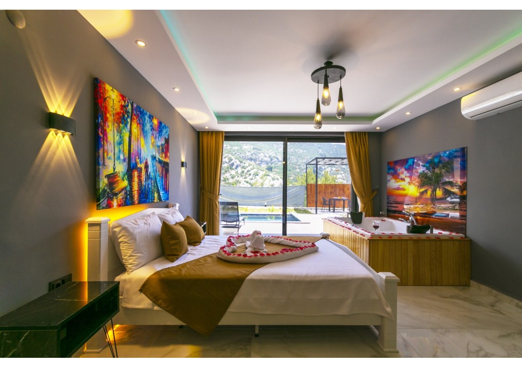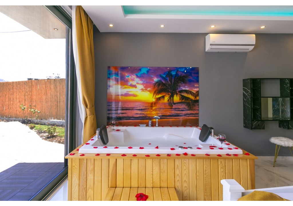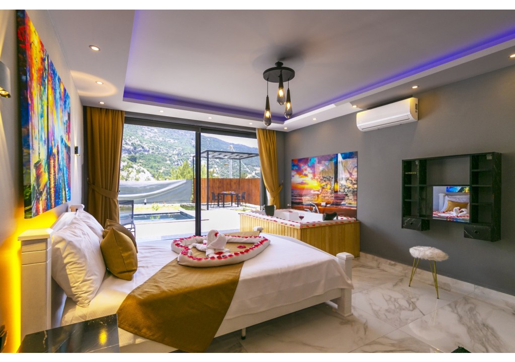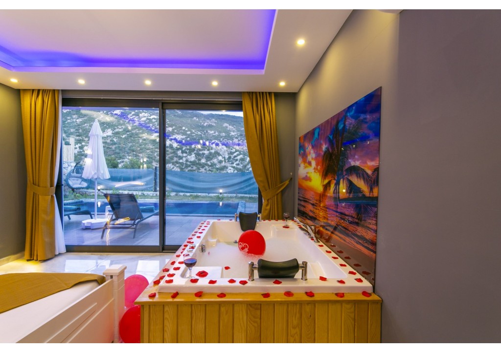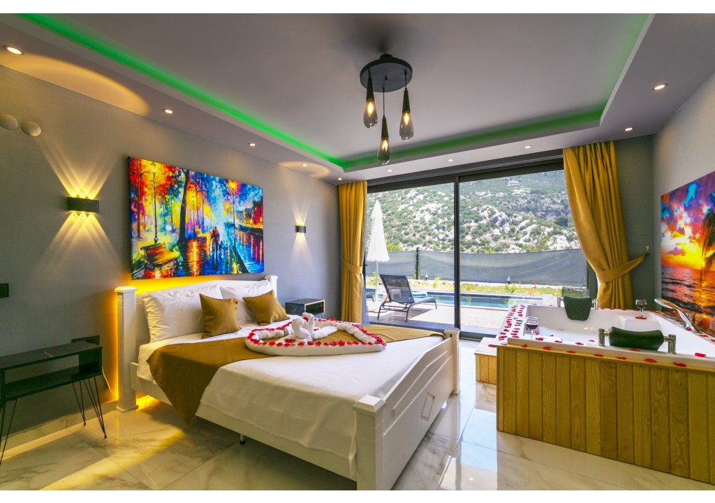 Detayları; Çift kişilik yatak, makyaj masası, komidin, klima, elbise dolabı, jakuzi, banyo ve tuvalet bulunmaktadır.