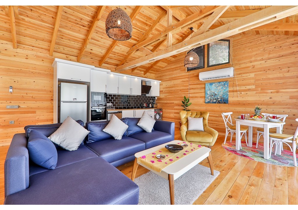 Detayları; Oturma grubu, Uydu TV (LCD), Klima, 4 kişilik yemek masası, Havuz terasına çıkış,