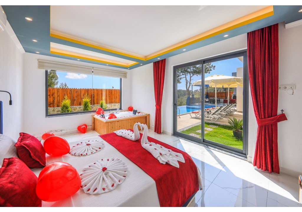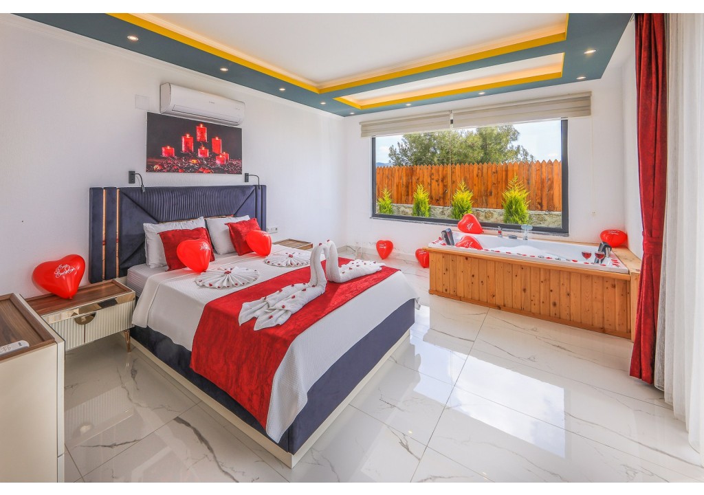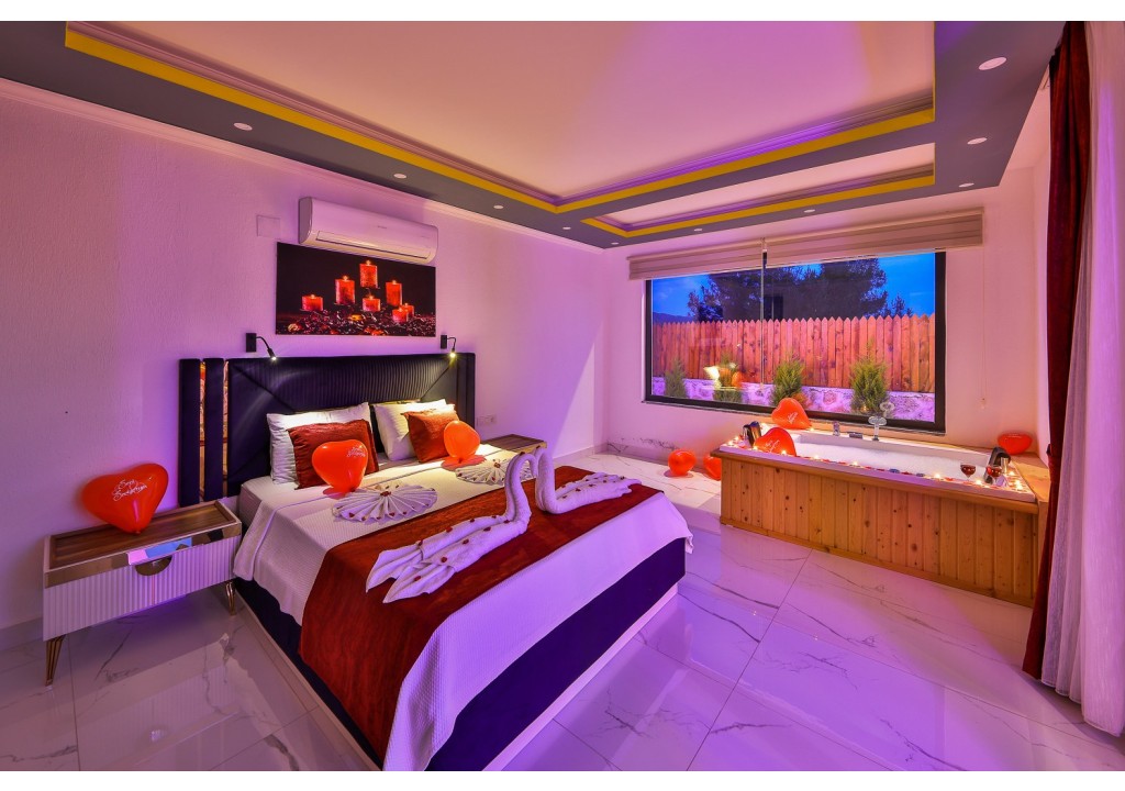 Detayları; Çift kişilik yatak, makyaj masası, komidin, klima, elbise dolabı, jakuzi, banyo ve tuvalet bulunmaktadır.