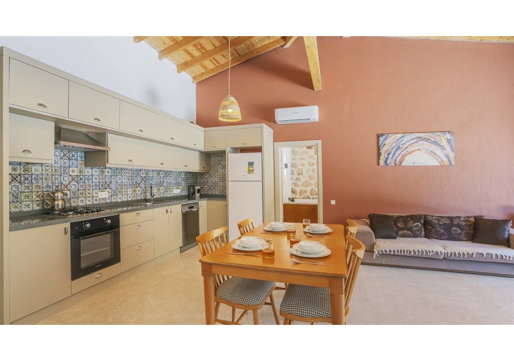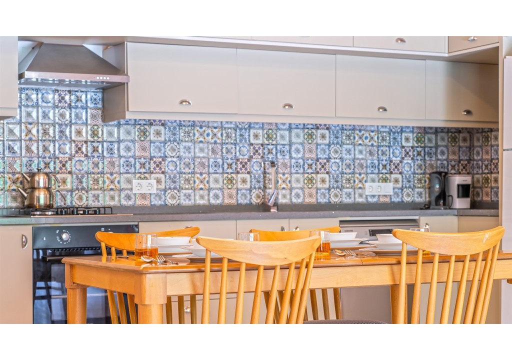 Detayları; Buzdolabı, bulaşık makinesi, fırın, 4’lü ocak, mikrodalga fırın, elektrikli su ısıtıcı, yemek takımı, tava, tencereler, çatal bıçak ve mutfak ekipmanları bulunmaktadır.
