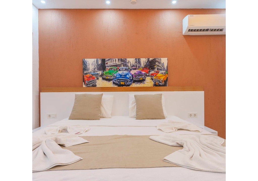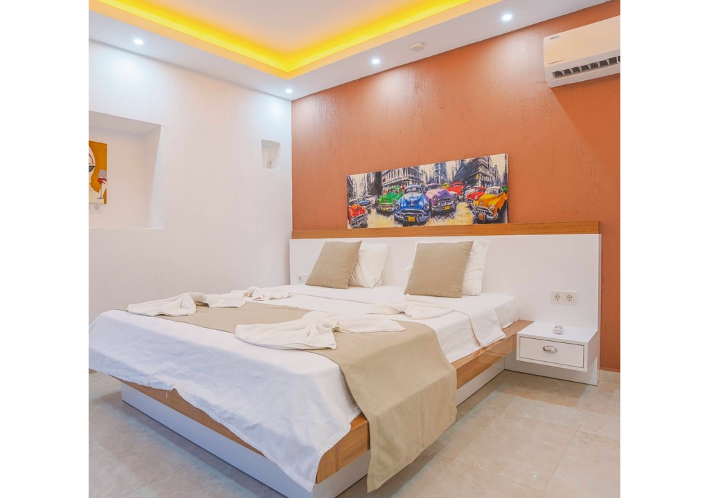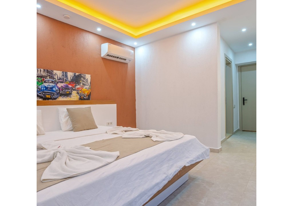 Detayları; Çift kişilik yatak, makyaj masası, komidin, klima, elbise dolabı, banyo ve tuvalet bulunmaktadır.