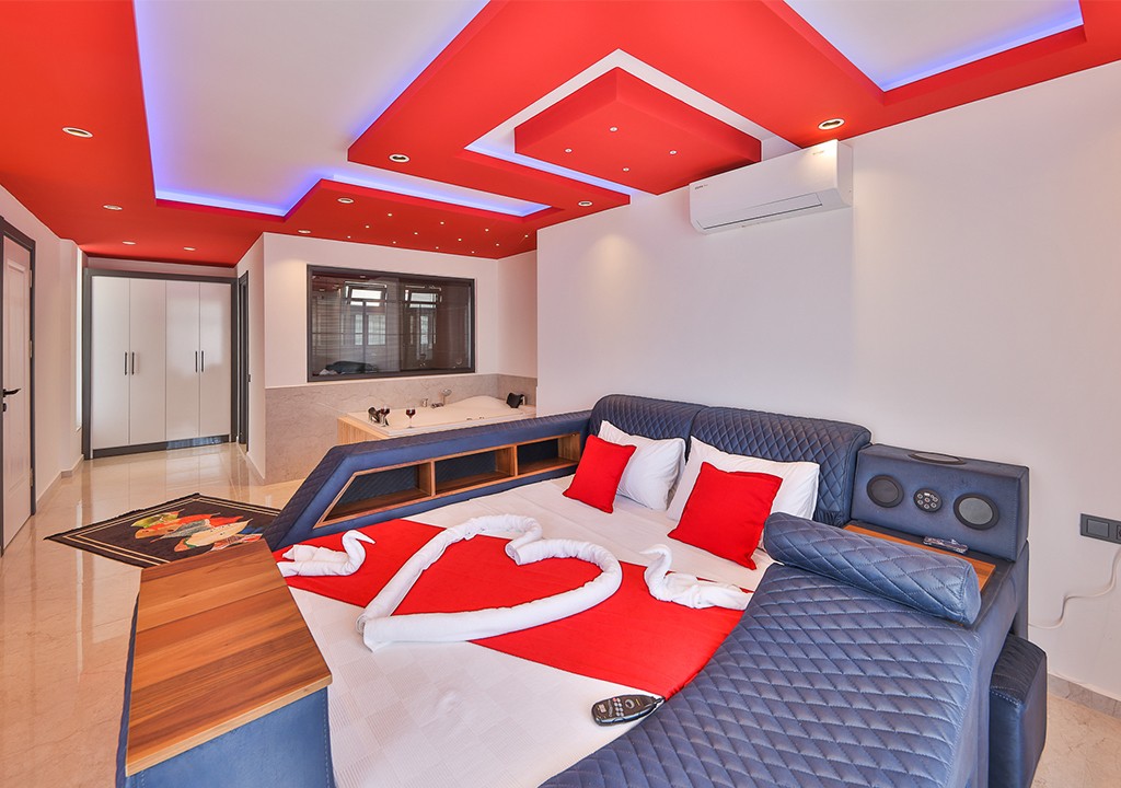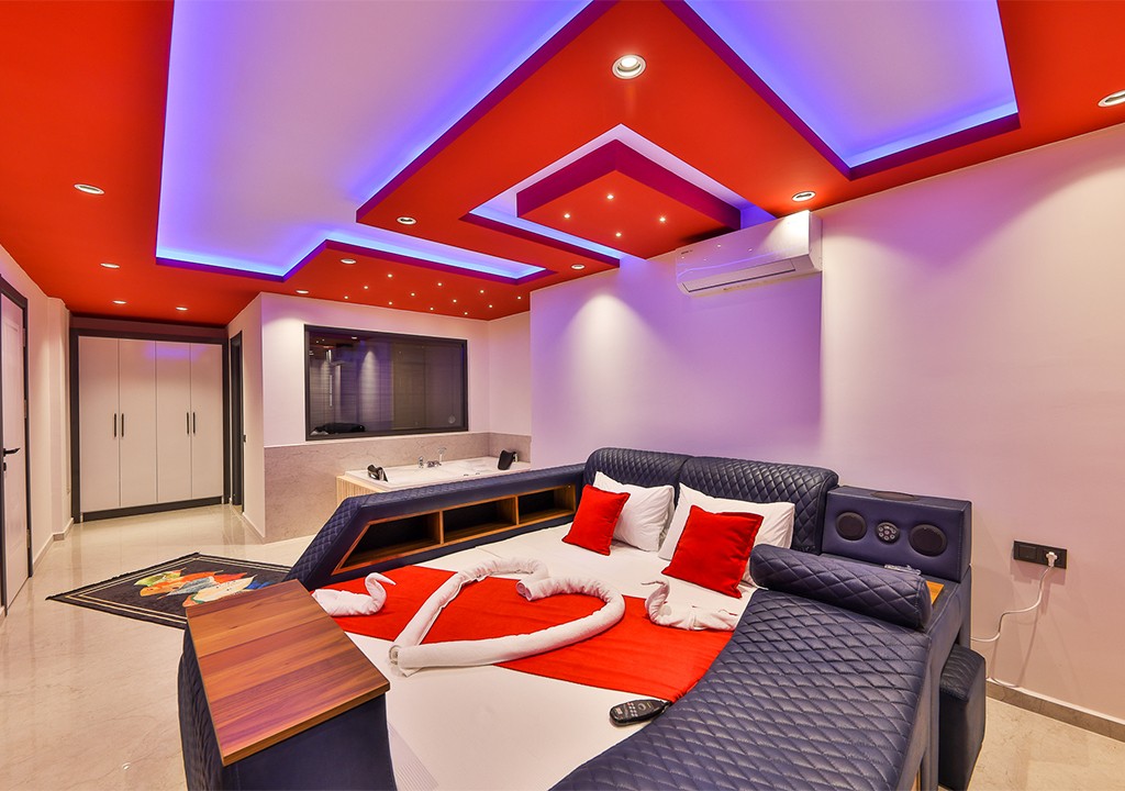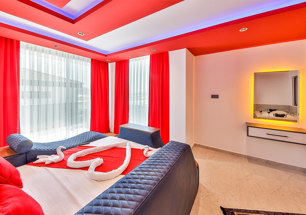Detayları; Çift kişilik yatak ,klima ,komodin, elbise dolabı, makyaj masası, jakuzi banyo ve tuvalet bulunmaktadır.