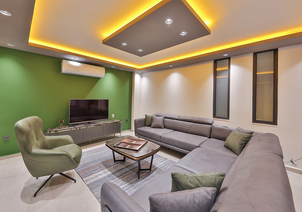 Detayları; Oturma grubu, Uydu TV (LCD), Klima, 4 kişilik yemek masası, Havuz terasına çıkış,
