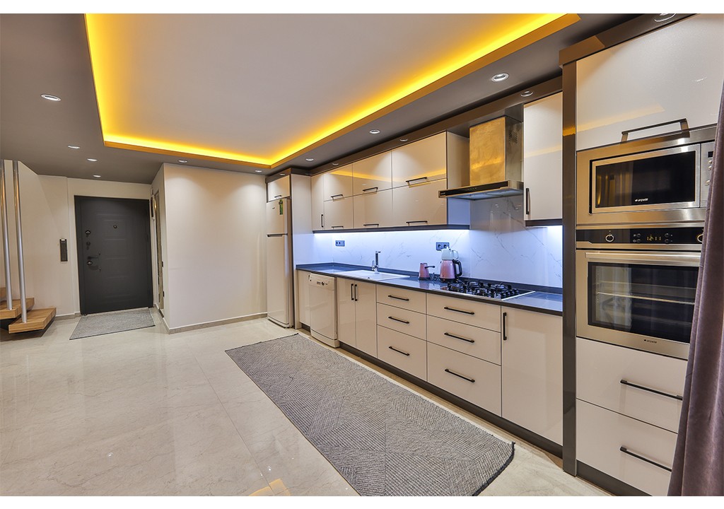 Detayları; Buz dolabı, Bulaşık makinesi, Fırın 4’lü Ocak (ankastre), Mikrodalga fırın, Elektrikli su ısıtıcı, 4 kişilik yemek takımı, Tava, Tencereler, Çatal bıçak vb.