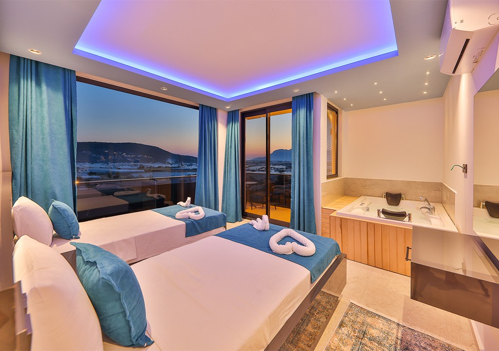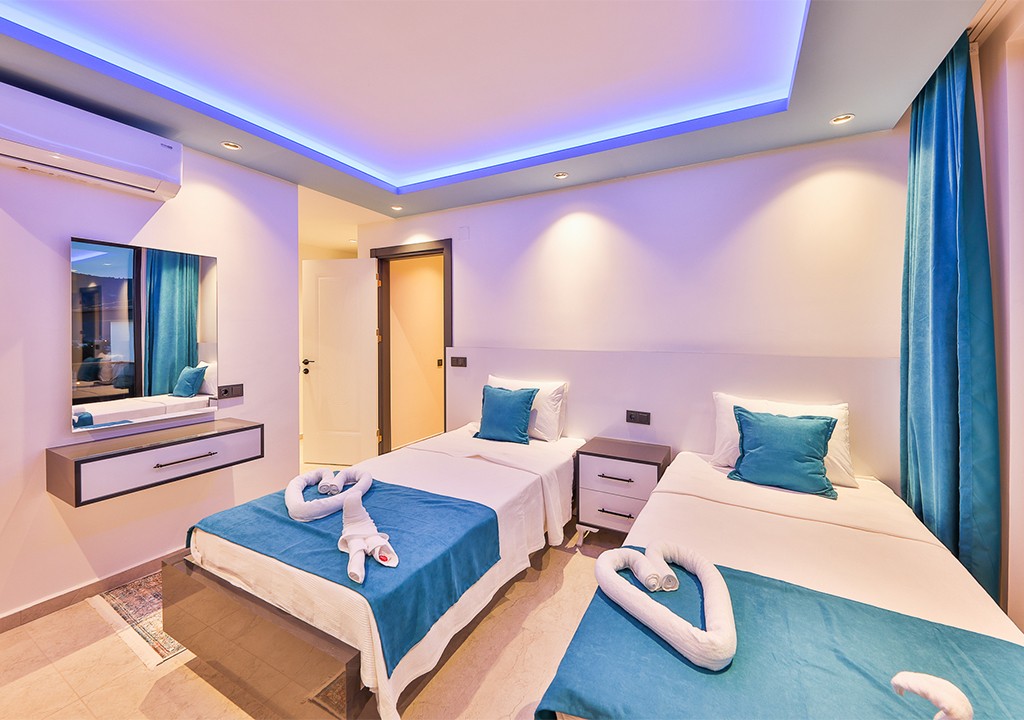 Detayları; İki adet tek kişilik yatak, elbise dolabı, makyaj masası, klima, jakuzi, banyo bulunmaktadır.