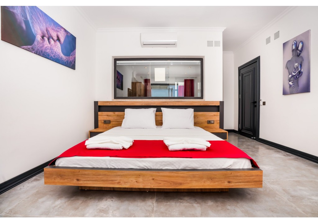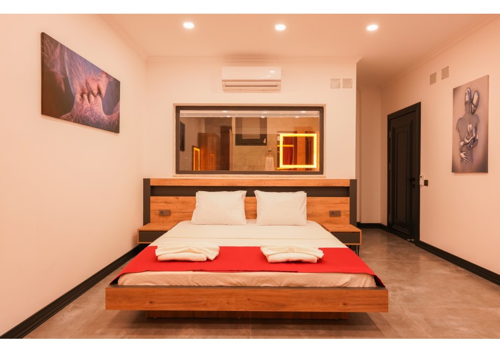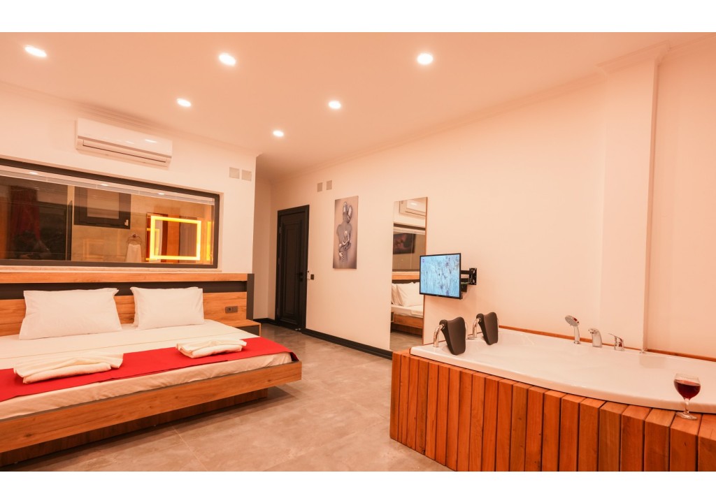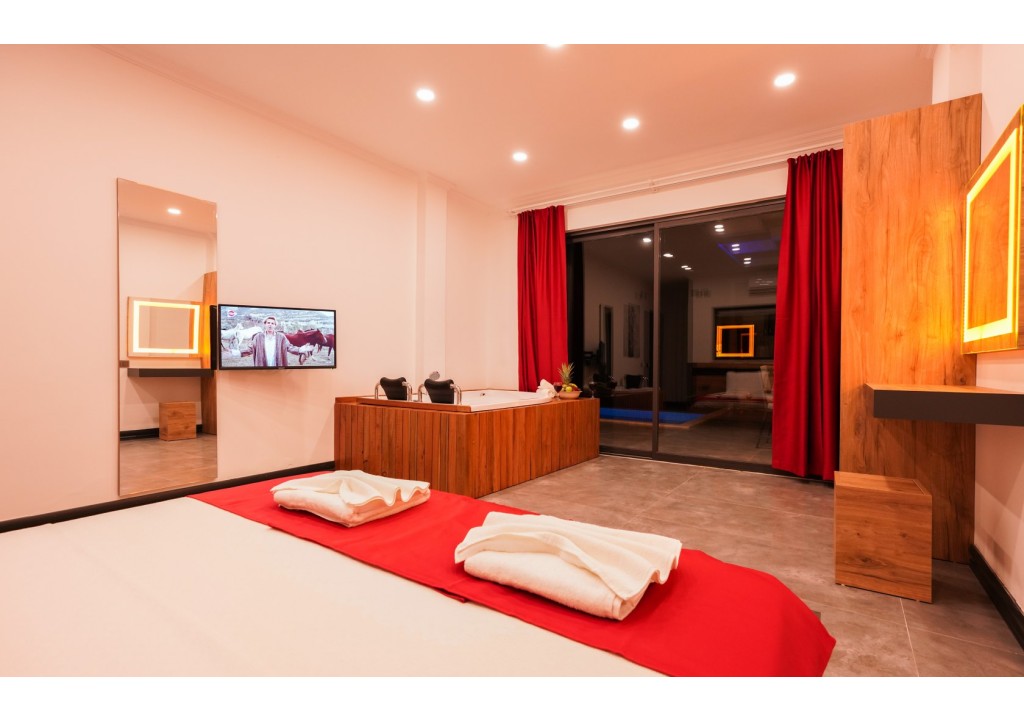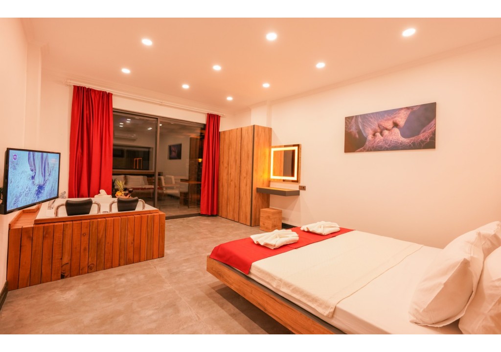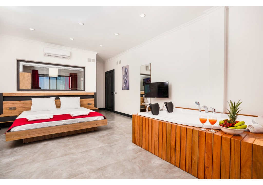Detayları; Çift kişilik yatak, makyaj masası, komidin, klima, elbise dolabı, jakuzi, banyo ve tuvalet bulunmaktadır.