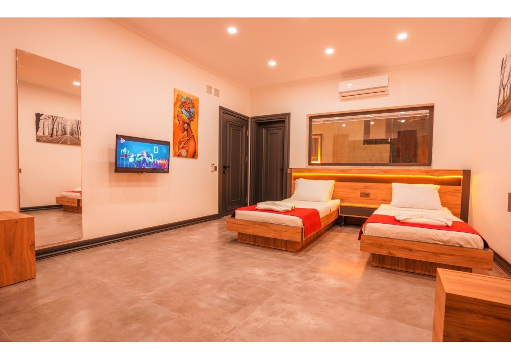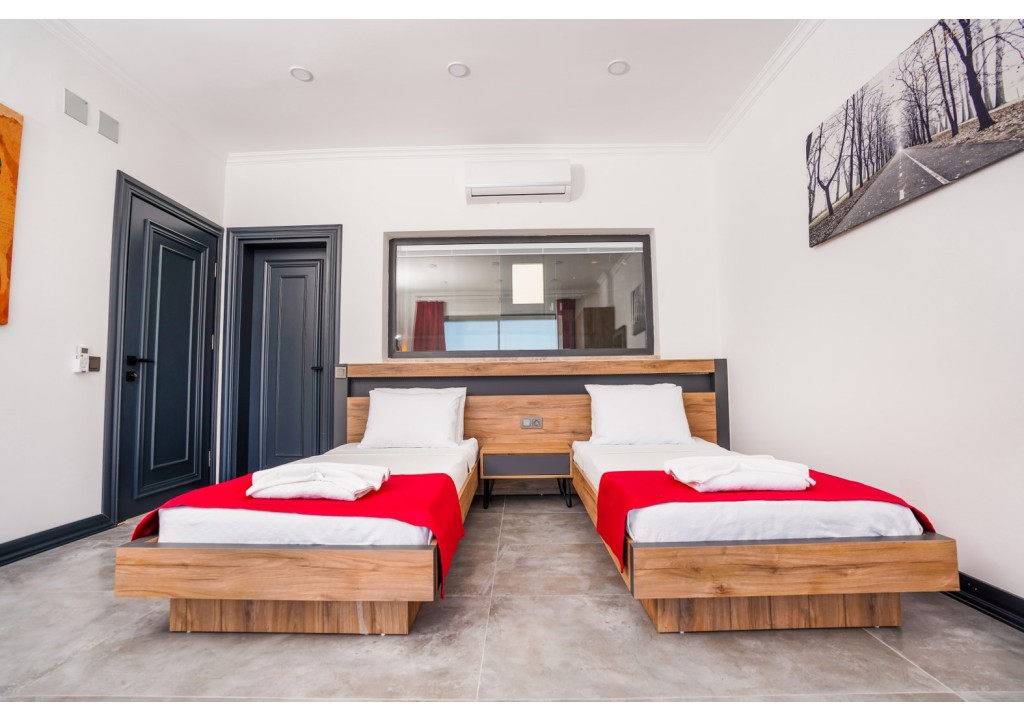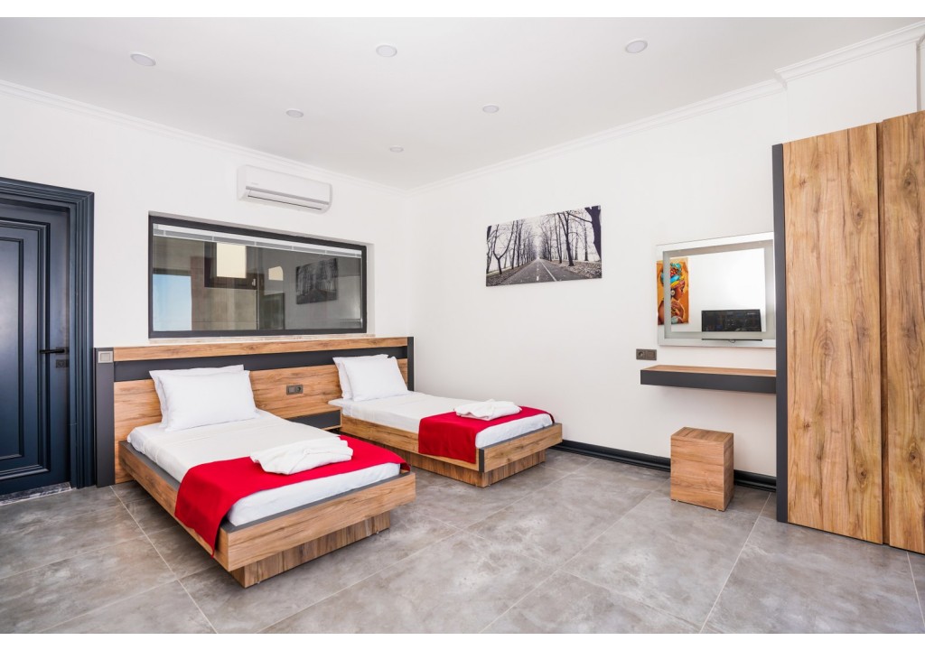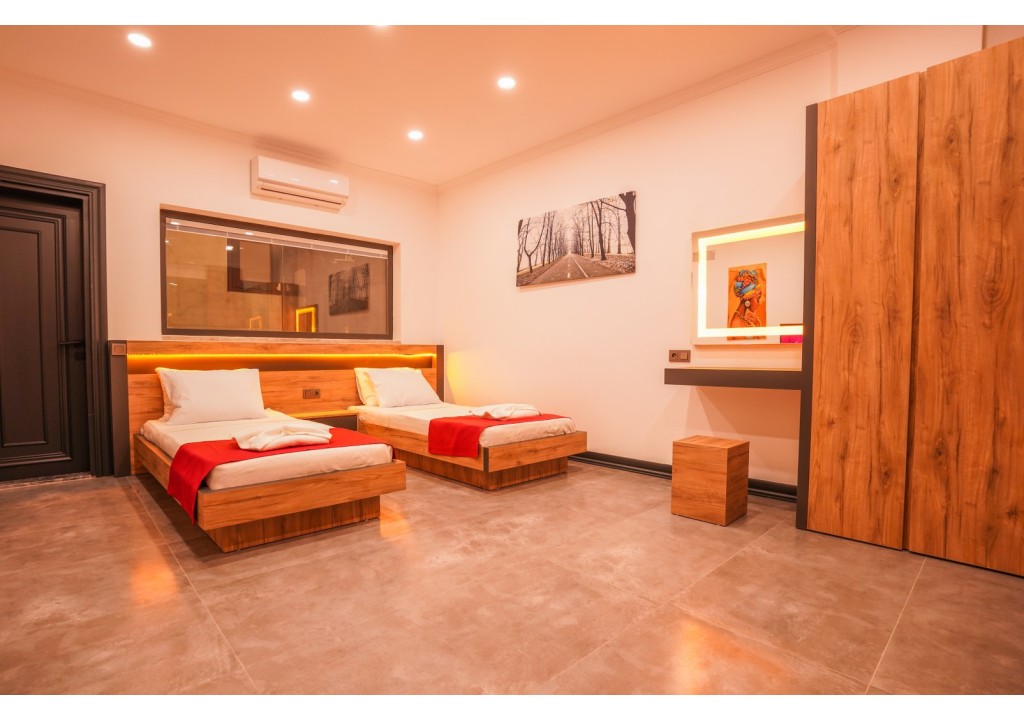 Detayları; İki adet tek kişilik yatak, komodin, klima, elbise dolabı, banyo ve tuvalet bulunmaktadır.