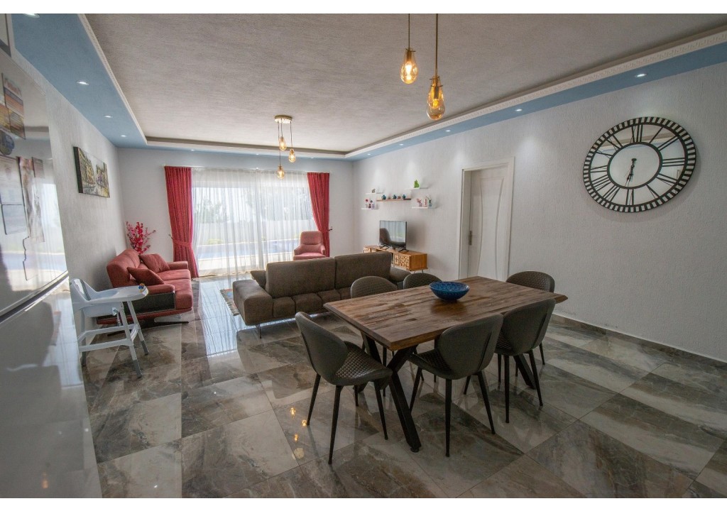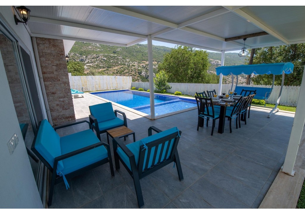 Detayları; Oturma grubu, Uydu TV (LCD), Klima, 6 kişilik yemek masası, Havuz terasına çıkış,