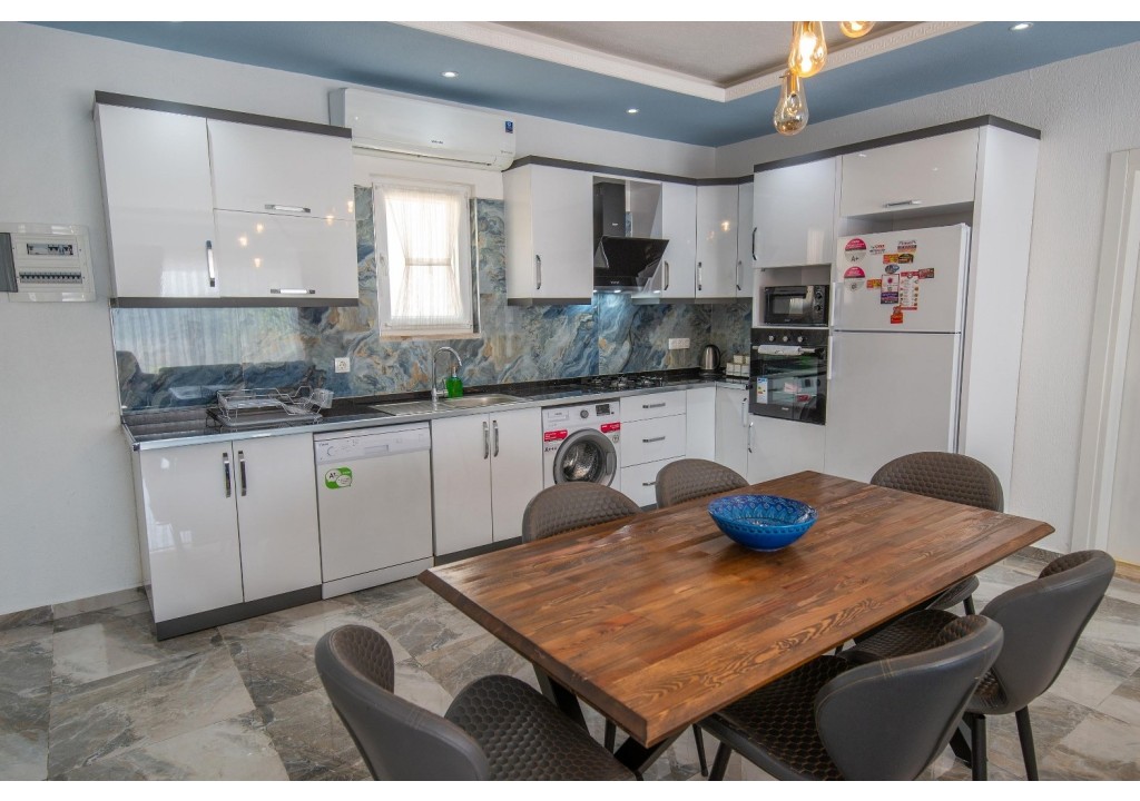 Detayları; Buzdolabı, Bulaşık makinesi, Fırın 4’lü Ocak (ankastre), Mikrodalga fırın, Elektrikli su ısıtıcı, 4 kişilik yemek takımı, Tava, Tencereler, Çatal bıçak vb.