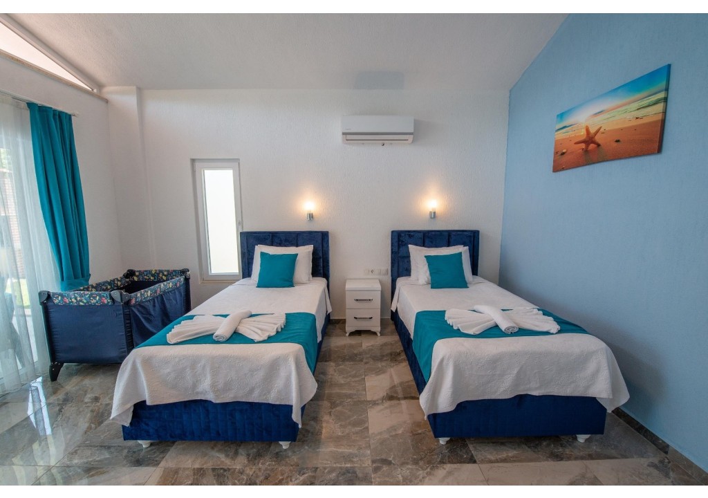 Detayları; İki adet tek kişilik yatak, komodin, klima, elbise dolabı, banyo ve tuvalet bulunmaktadır.