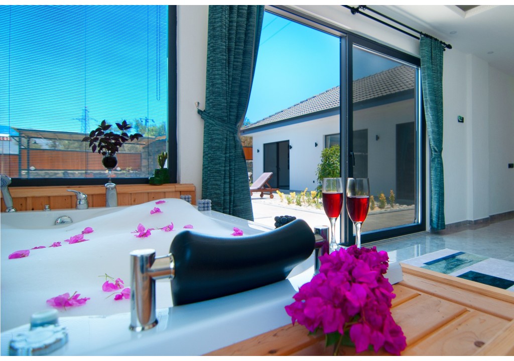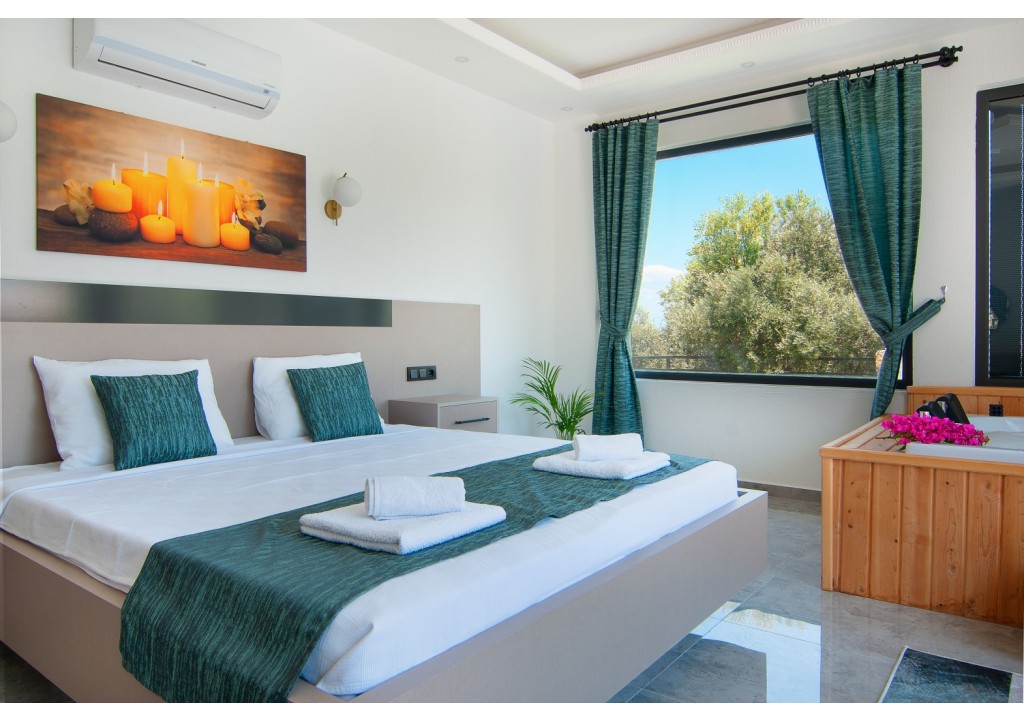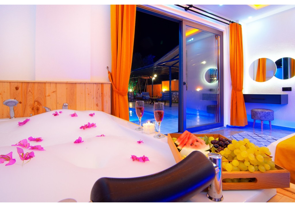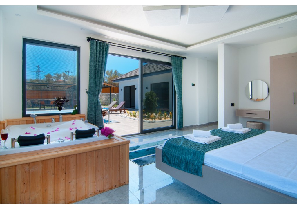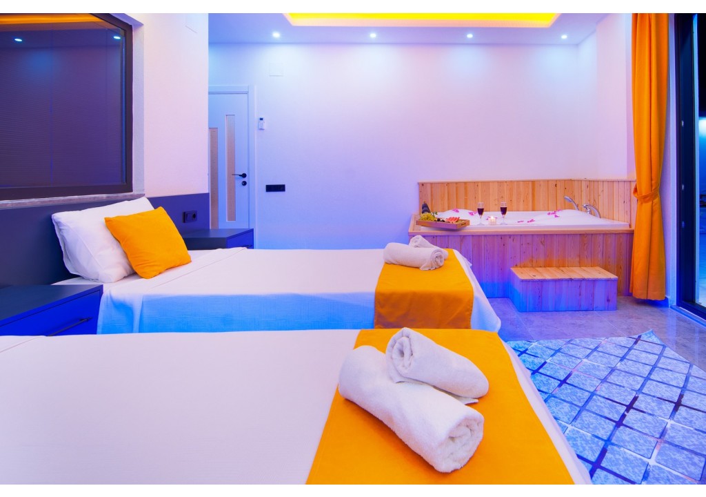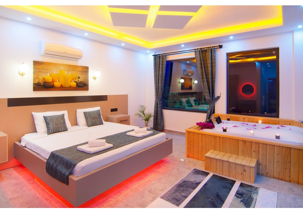Detayları; Çift kişilik yatak, makyaj masası, komodin, klima, elbise dolabı, jakuzi, banyo ve tuvalet bulunmaktadır.