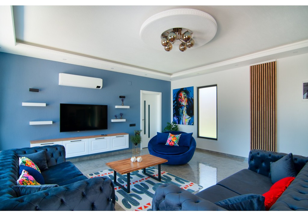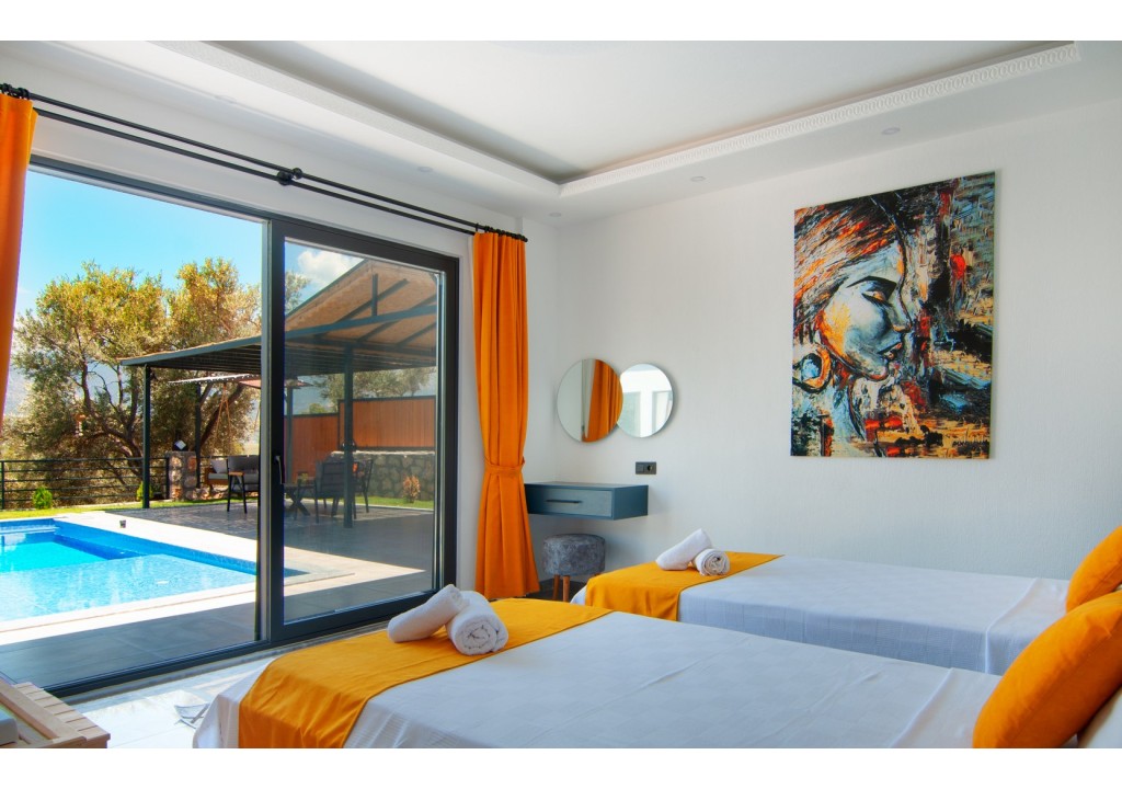 Detayları; Oturma grubu, Uydu TV (LCD), Klima, 4 kişilik yemek masası, Havuz terasına çıkış,