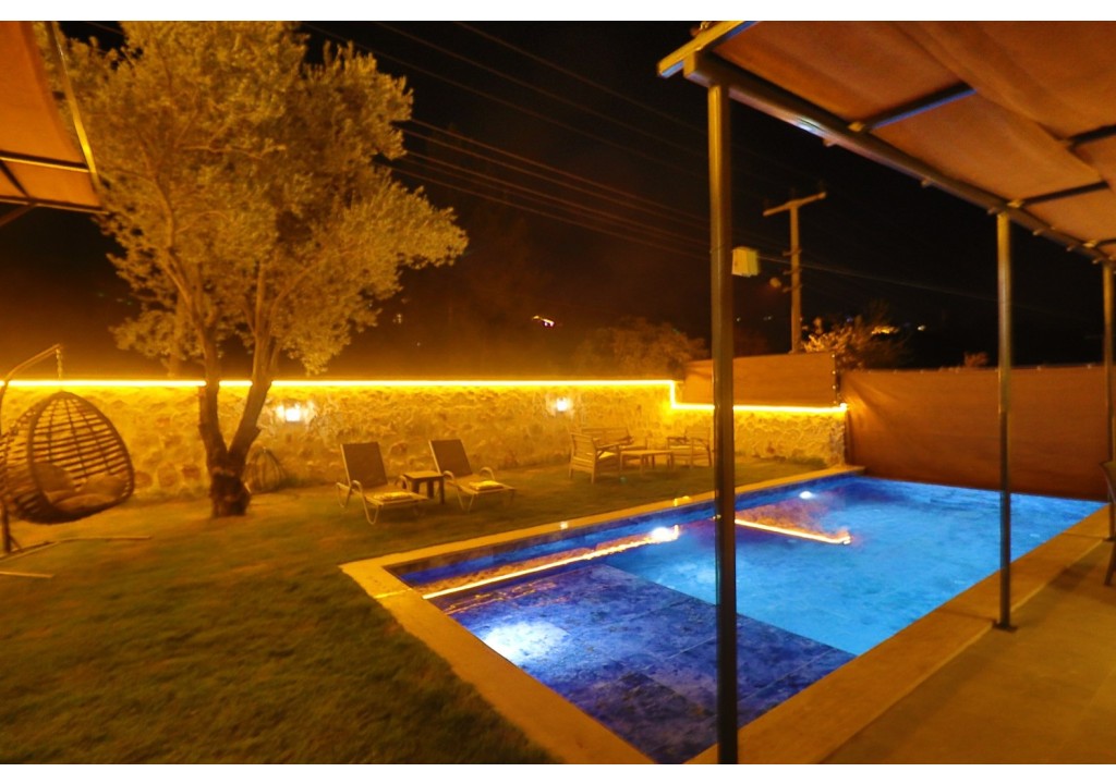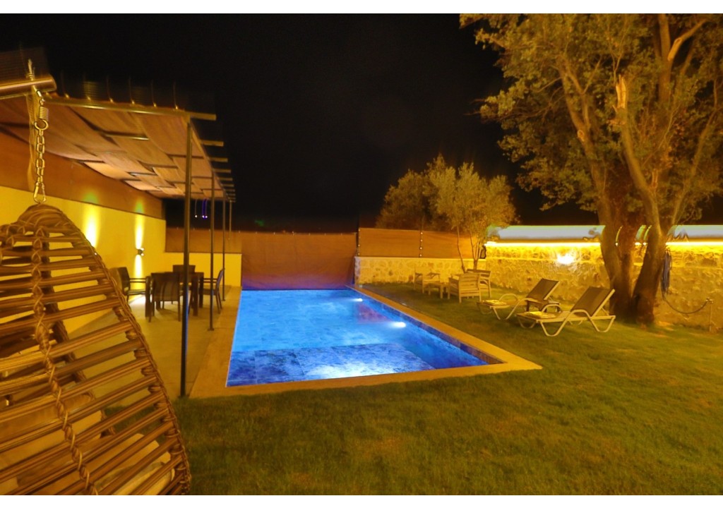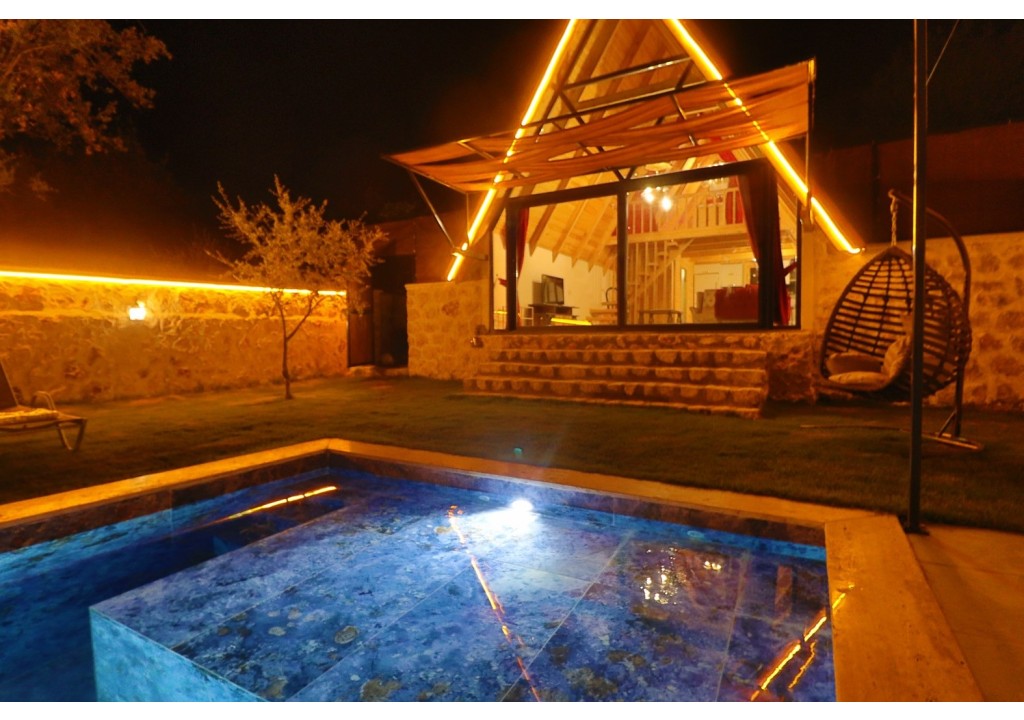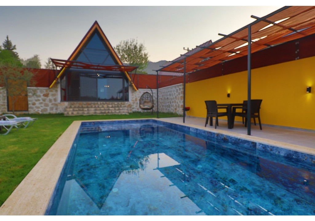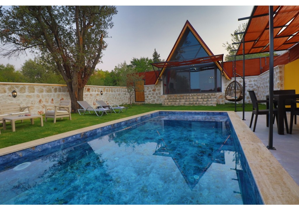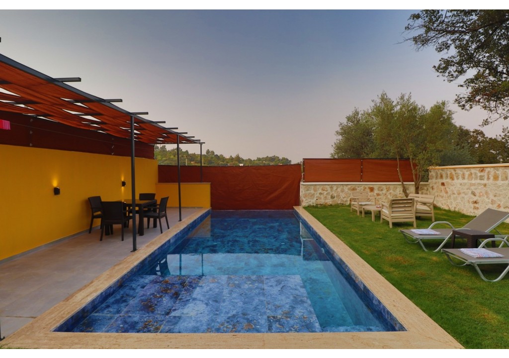Kalkan’ın Üzümlü Köyü’nde yer alan Villa Meşkhane, havuz bölgesi dışarıdan görünmeyen, doğa içerisinde yer alan muhafazakâr bir villadır. 2 kişi kapasiteli Villa Meşkhane, balayı çiftleri için ideal bir seçenektir.