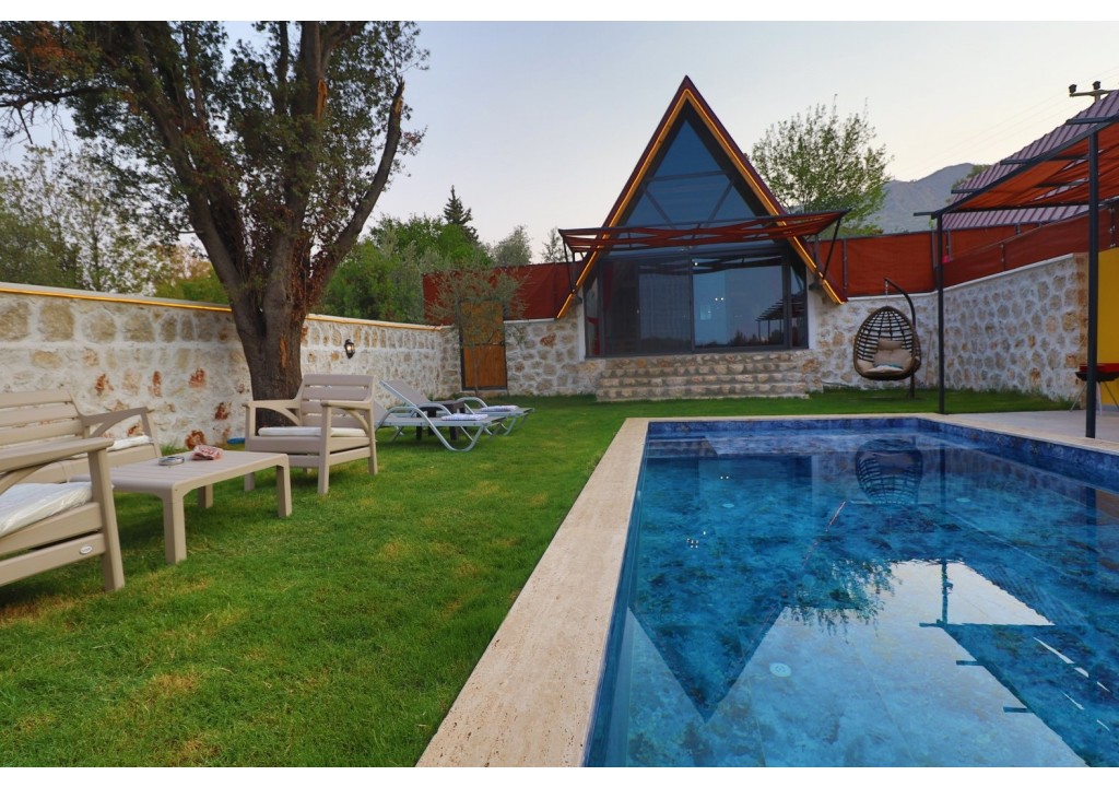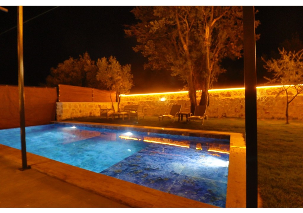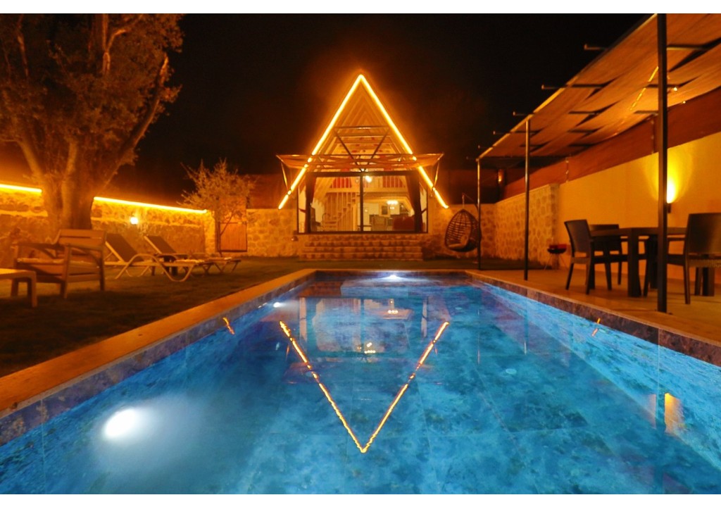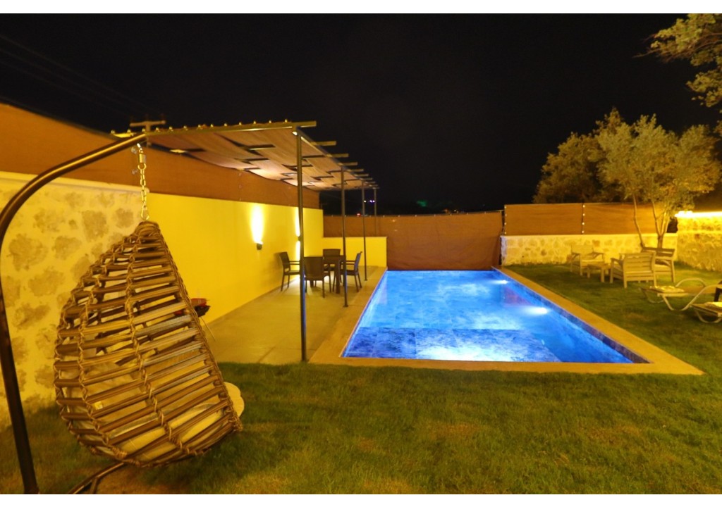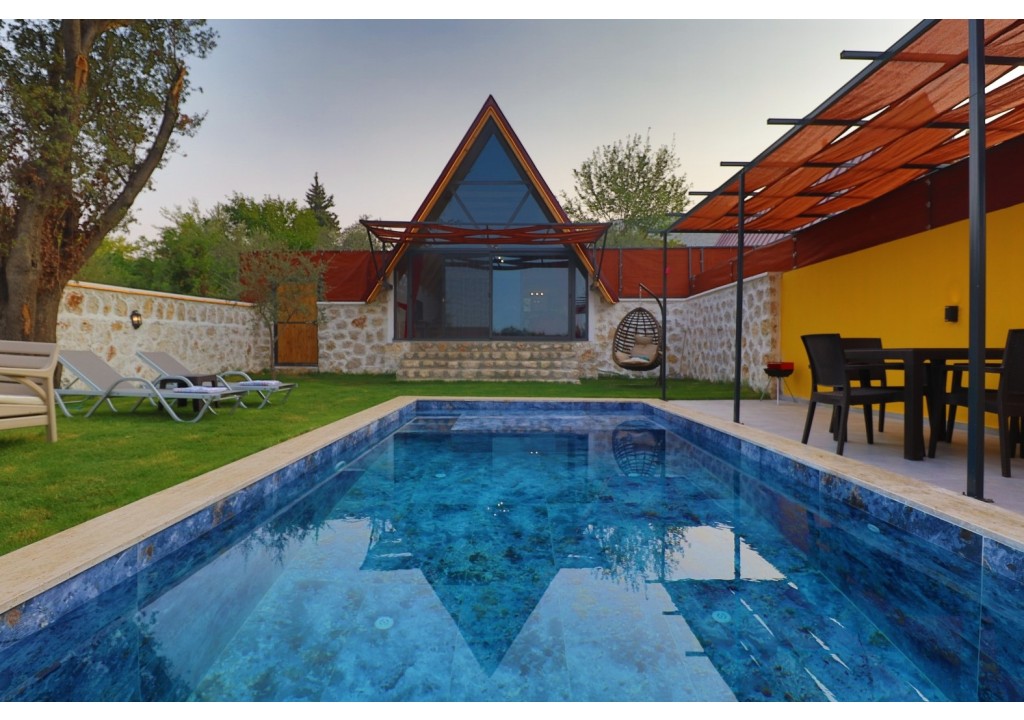 Kalkan’ın Üzümlü Köyü’nde yer alan Villa Meşkhane, havuz bölgesi dışarıdan görünmeyen, doğa içerisinde yer alan muhafazakâr bir villadır. 2 kişi kapasiteli Villa Meşkhane, balayı çiftleri için ideal bir seçenektir.