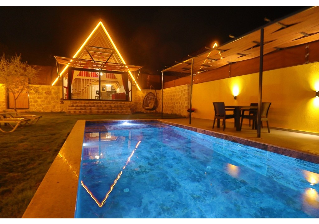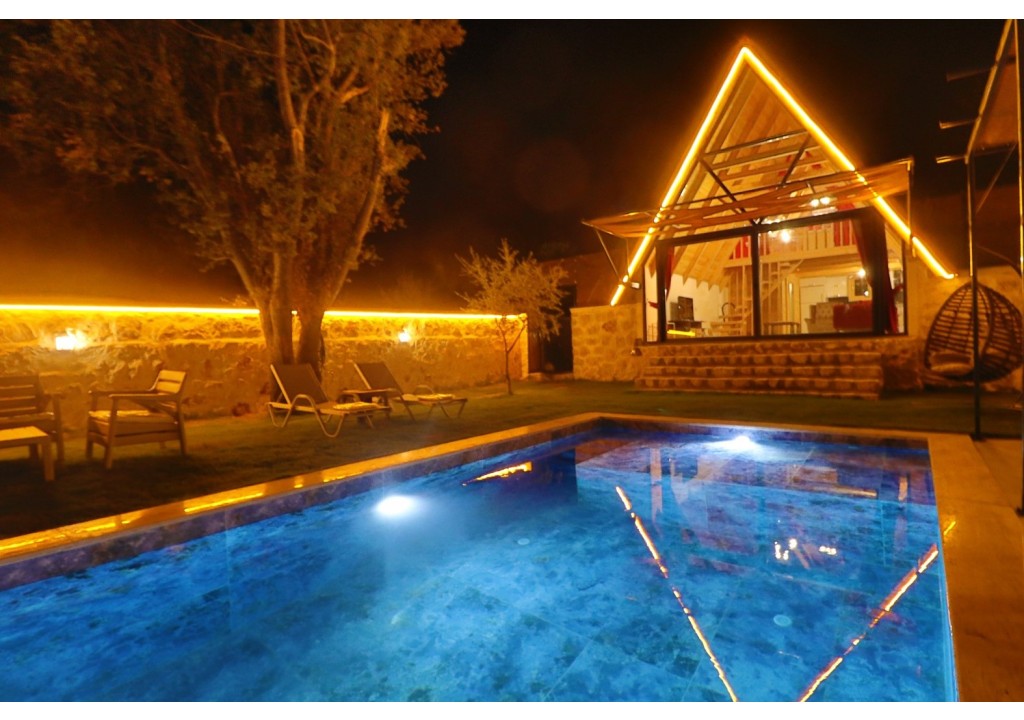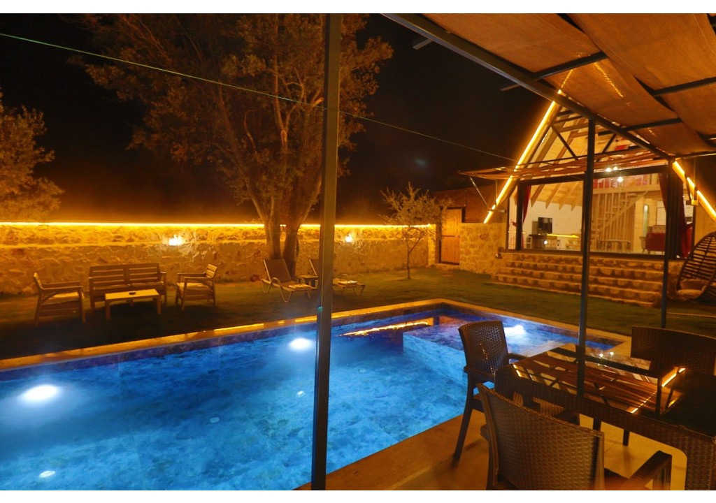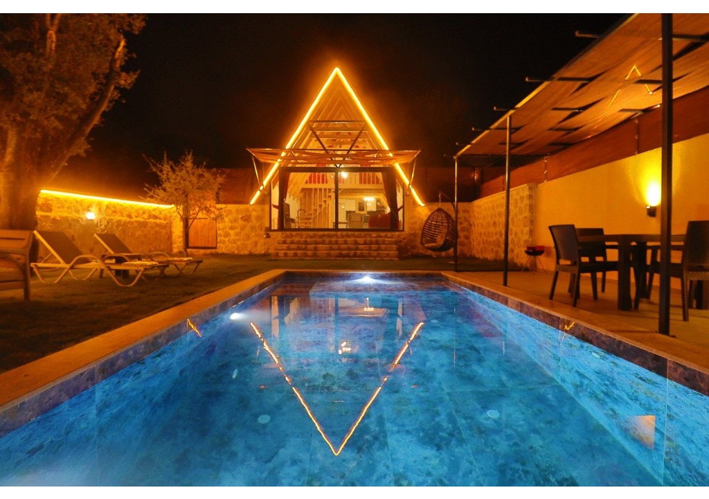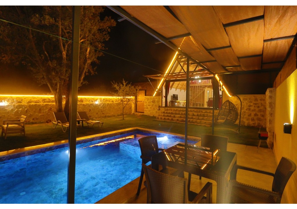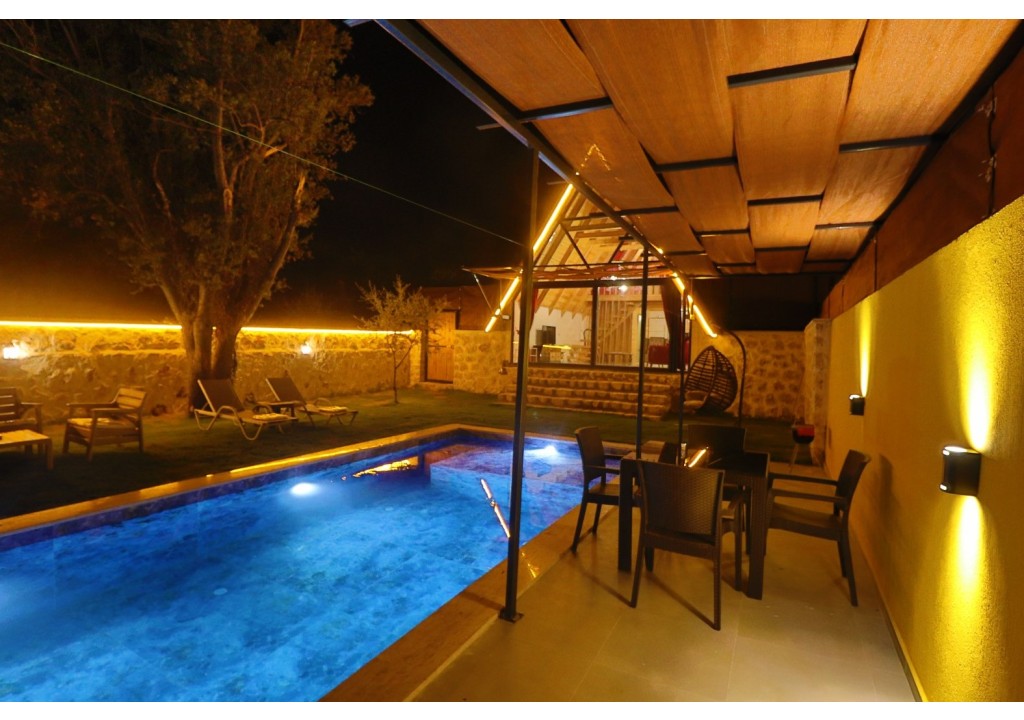 Kalkan’ın Üzümlü Köyü’nde yer alan Villa Meşkhane, havuz bölgesi dışarıdan görünmeyen, doğa içerisinde yer alan muhafazakâr bir villadır. 2 kişi kapasiteli Villa Meşkhane, balayı çiftleri için ideal bir seçenektir.