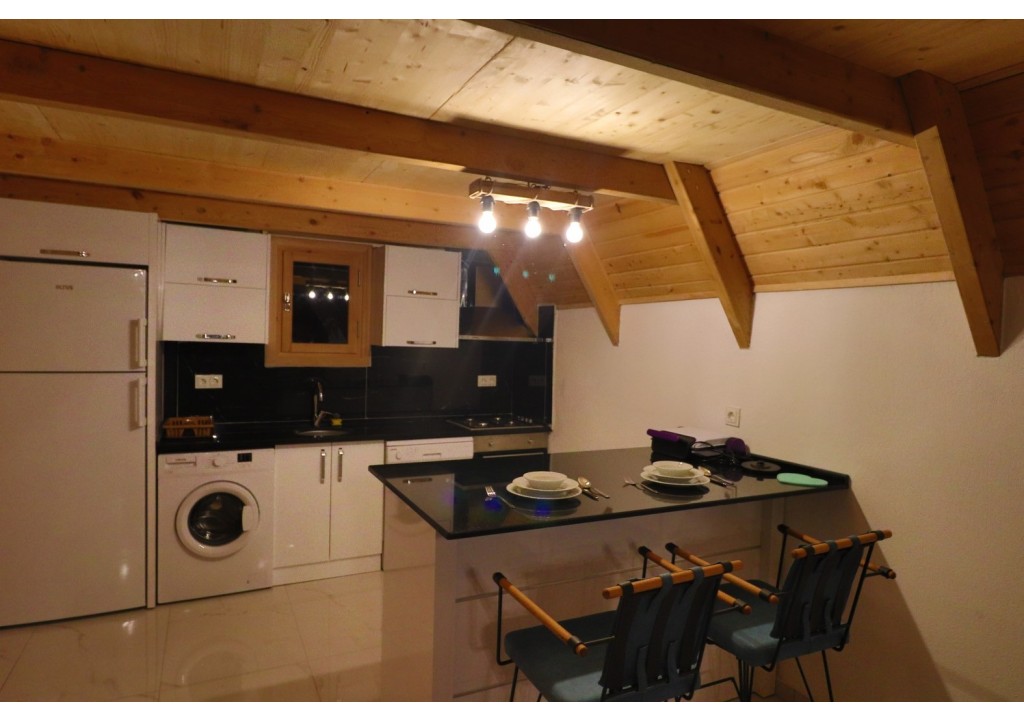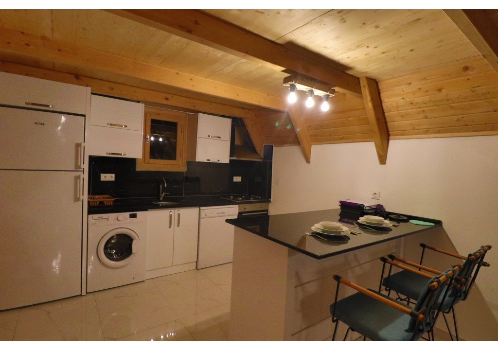 Detayları; Buz dolabı, Bulaşık makinesi, Fırın 4’lü Ocak (ankastre), Mikrodalga fırın, Elektrikli su ısıtıcı, 4 kişilik yemek takımı, Tava, Tencereler, Çatal bıçak vb.