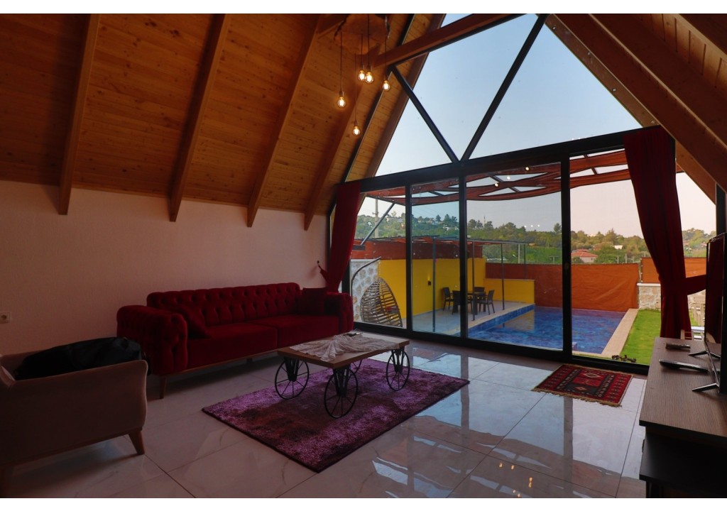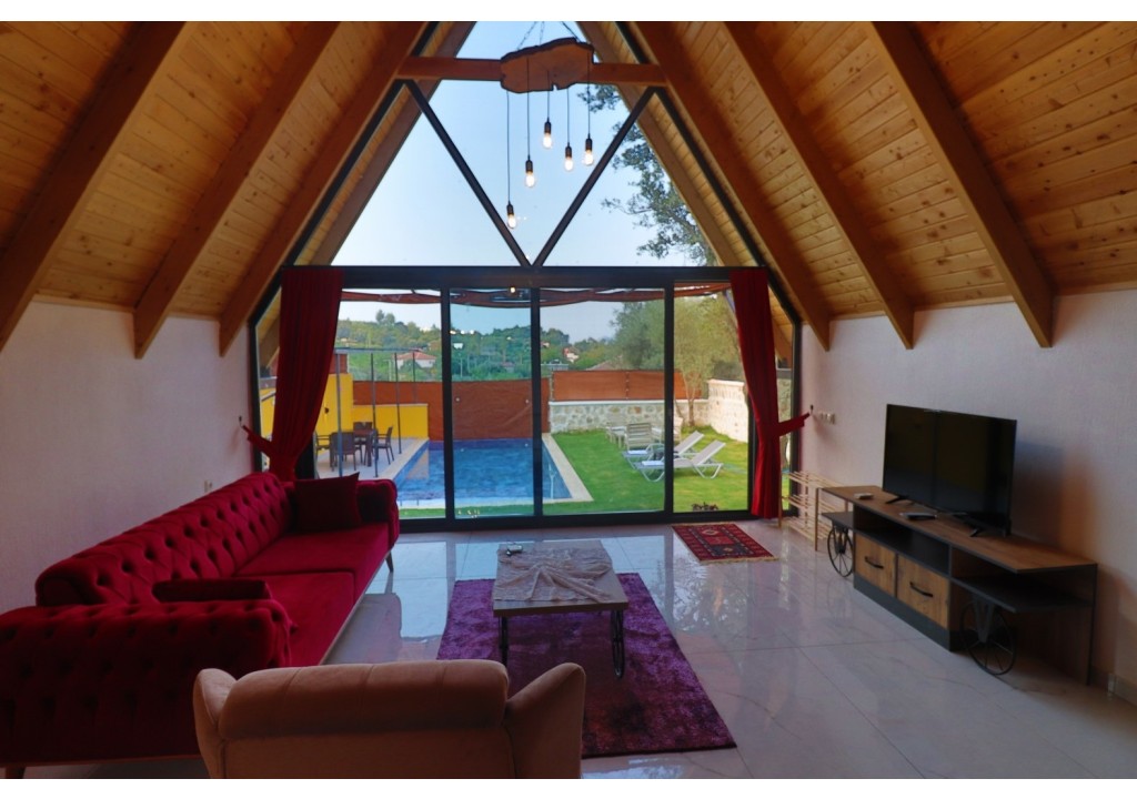 Detayları; Oturma grubu, Uydu TV (LCD), Klima, 4 kişilik yemek masası, Havuz terasına çıkış,
