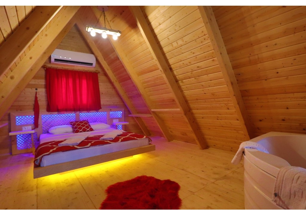 Detayları; Çift kişilik yatak, makyaj masası, komidin, elbise dolabı, jakuzi, banyo ve tuvalet bulunmaktadır.