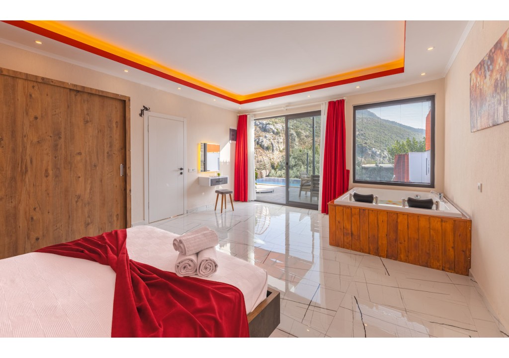 Detayları; Çift kişilik yatak, makyaj masası, komidin, klima, elbise dolabı, jakuzi, banyo ve tuvalet bulunmaktadır.
