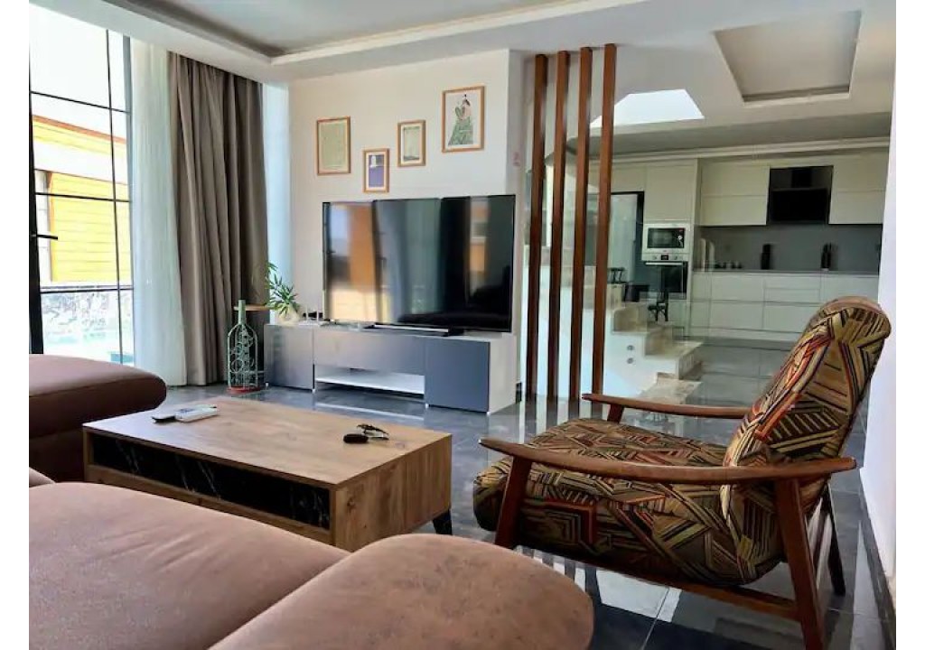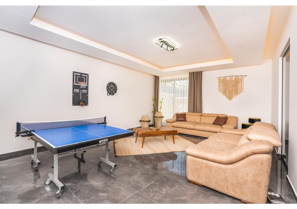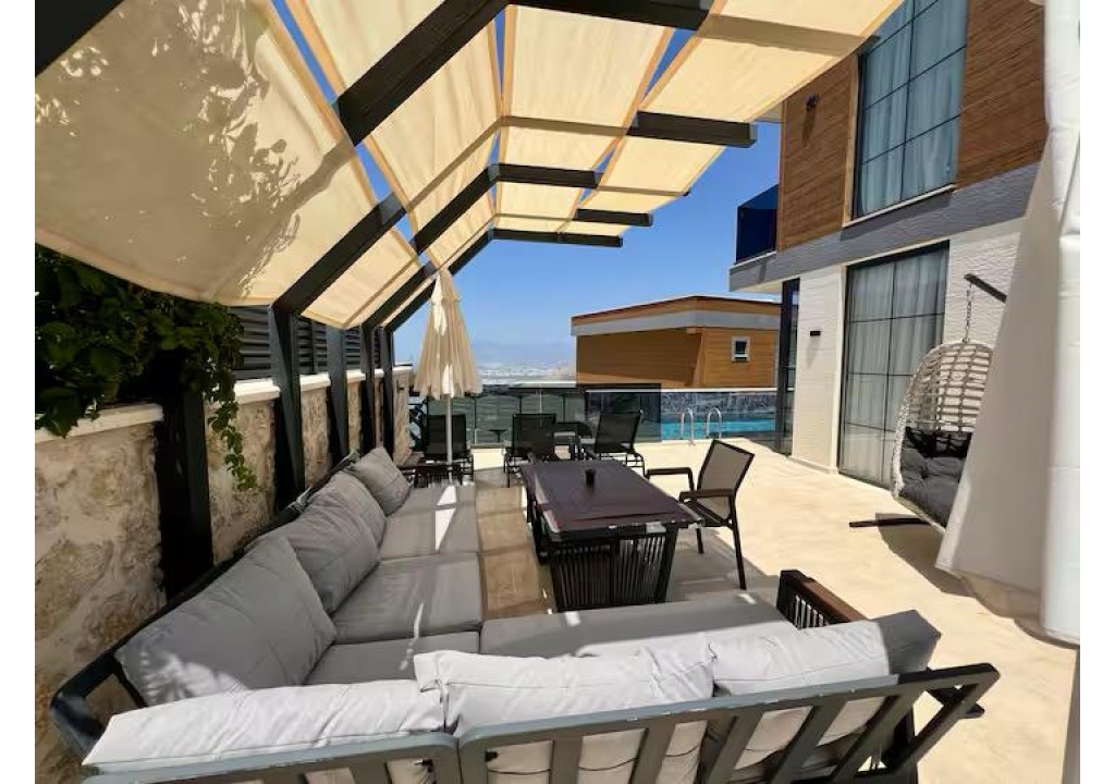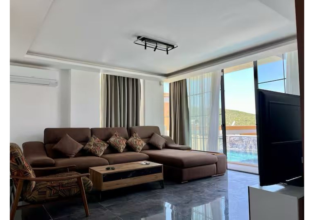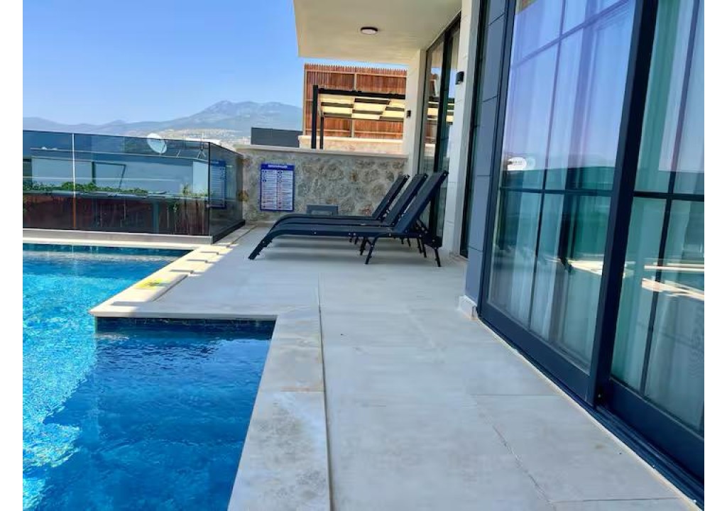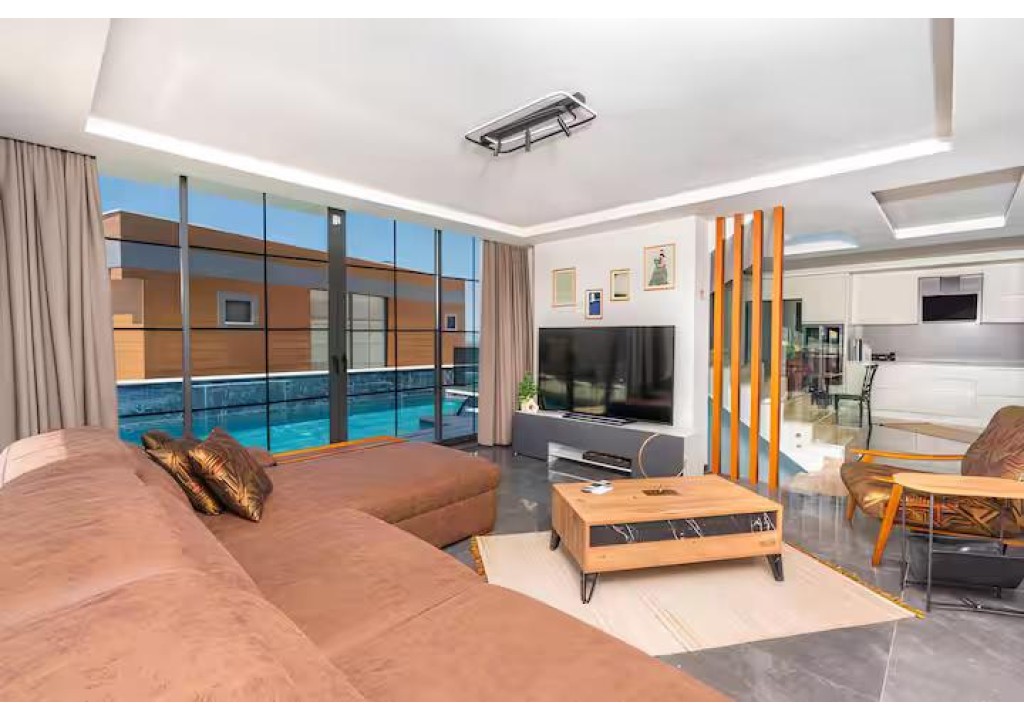 Detayları; Oturma grubu, uydu TV, klima, yemek masası ve havuz terasına çıkış bulunmaktadır.