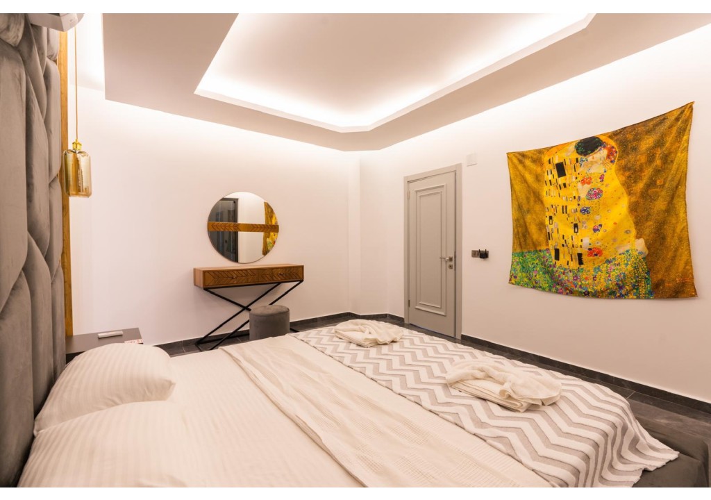 Detayları; Çift kişilik yatak, makyaj masası, komodin, klima, elbise dolabı, banyo ve tuvalet yer almaktadır.