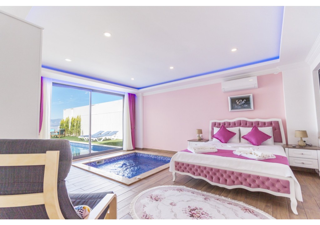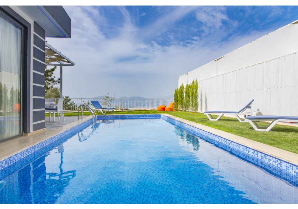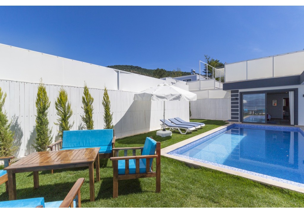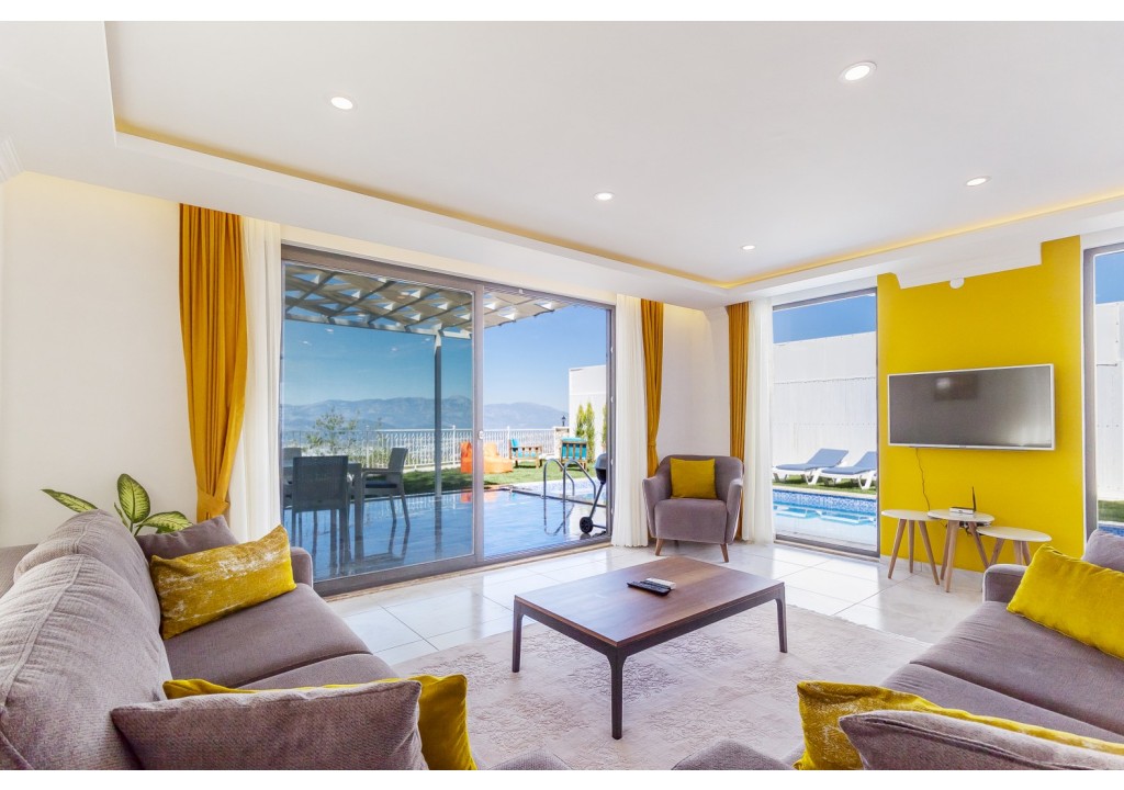 Detayları; Havuz deniz ve doğa manzaralı salonda , oturma grubu, uydu TV (LCD), kablosuz internet, klima, bulunmaktadır. Salondan havuz terasına direkt çıkış bulunmaktadır.