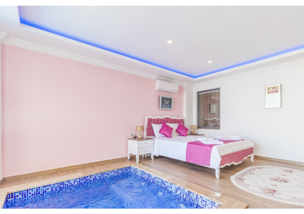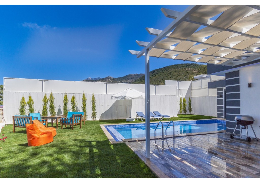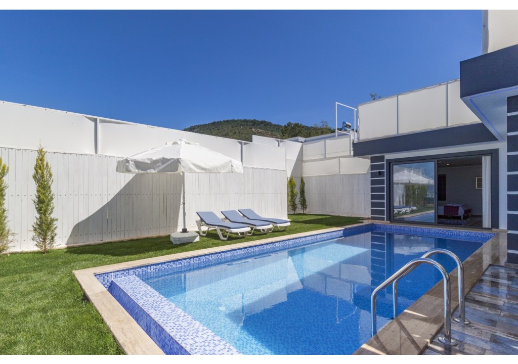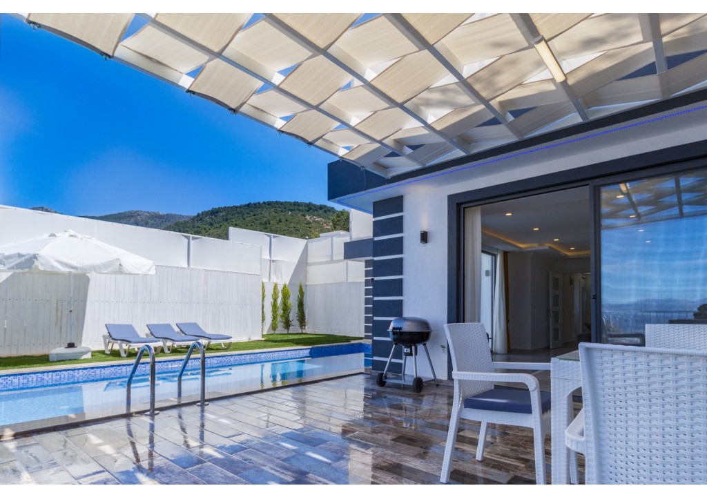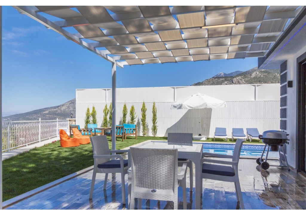 Detayları; Havuz deniz ve doğa manzaralı salonda , oturma grubu, uydu TV (LCD), kablosuz internet, klima, bulunmaktadır. Salondan havuz terasına direkt çıkış bulunmaktadır.