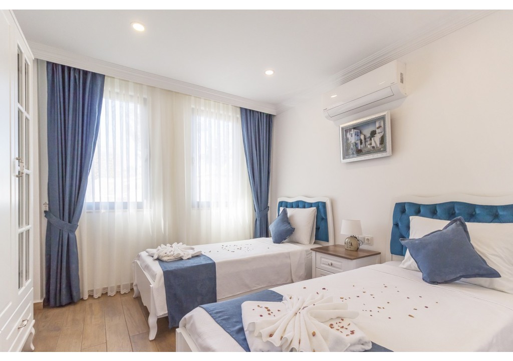 Detayları; 2 adet tek kişilik yatak, komodin, klima, elbise dolabı, banyo ve tuvalet bulunmaktadır.