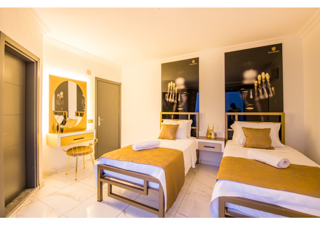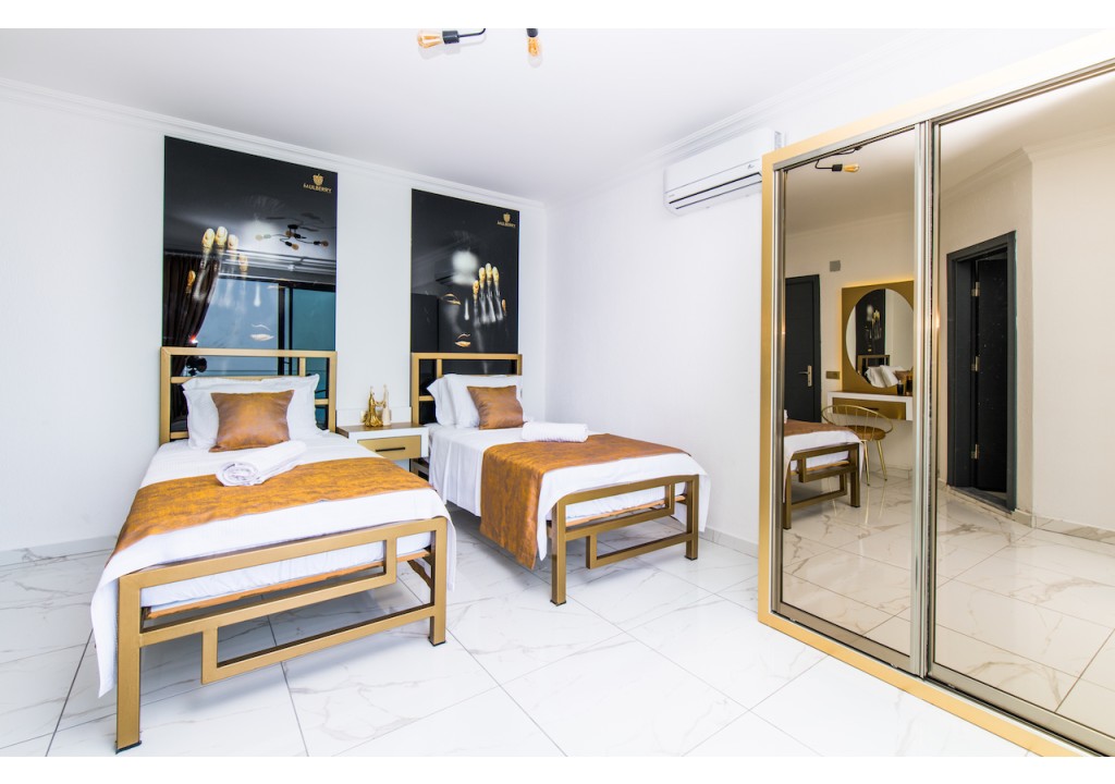 Detayları; İki adet tek kişilik yatak, makyaj masası, komidin, klima, elbise dolabı, banyo ve tuvalet bulunmaktadır.