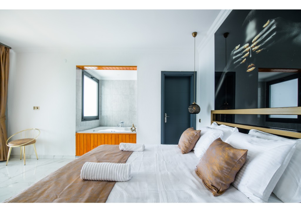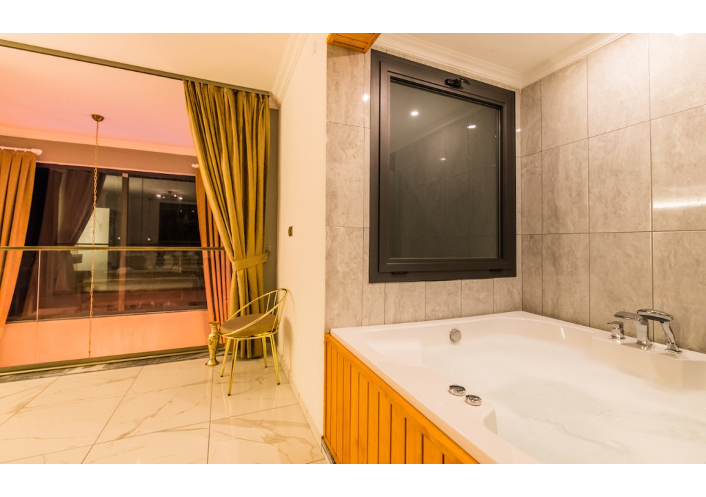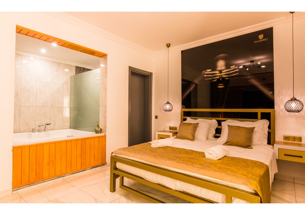 Detayları; Çift kişilik yatak, makyaj masası, komidin, klima, elbise dolabı, jakuzi, banyo ve tuvalet bulunmaktadır.