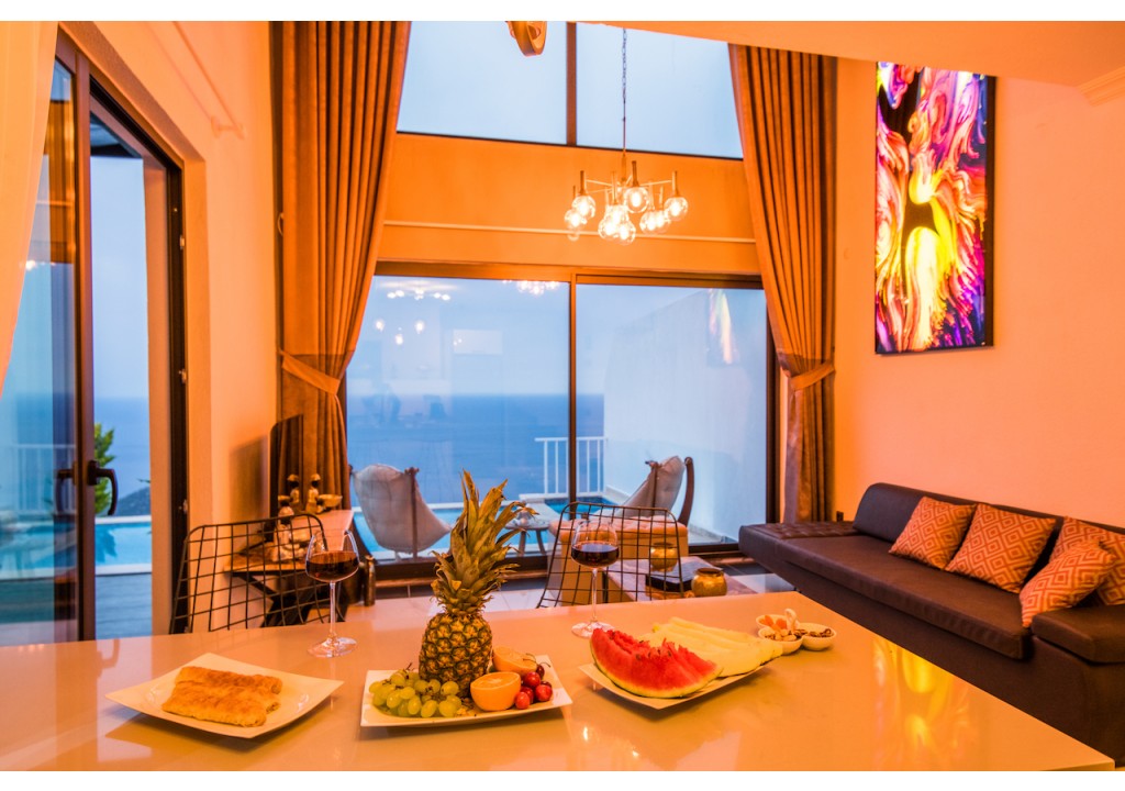 Detayları; Oturma grubu, Uydu TV (LCD), Klima, 6 kişilik yemek masası, Havuz terasına çıkış,
