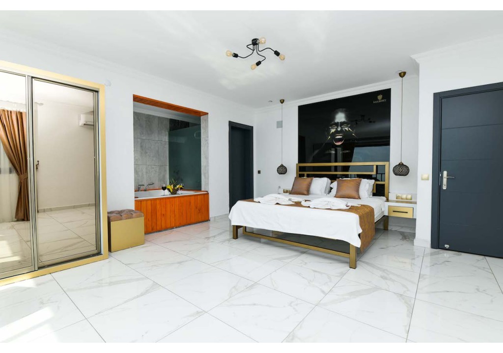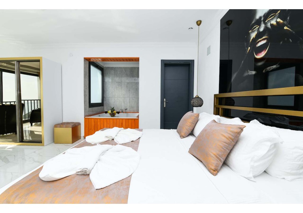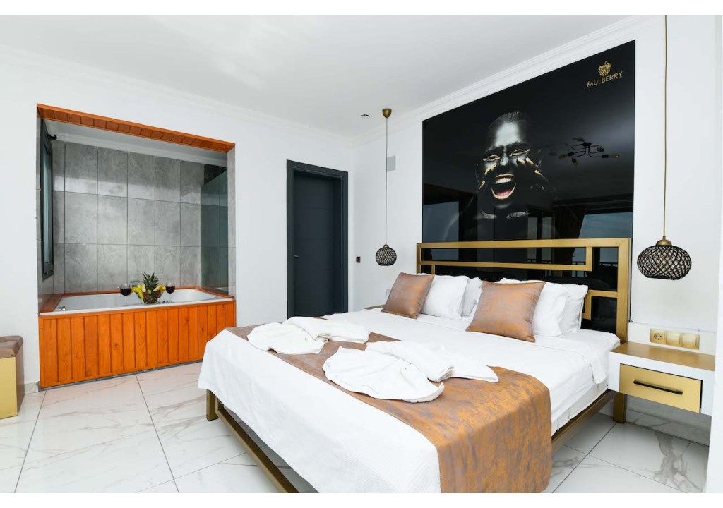 Detayları; Çift kişilik yatak, makyaj masası, komidin, klima, elbise dolabı, jakuzi, banyo ve tuvalet bulunmaktadır.