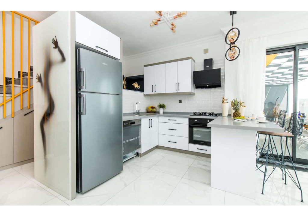 Detayları; Buzdolabı, Bulaşık makinesi, Fırın 4’lü Ocak (ankastre), Mikrodalga fırın, Elektrikli su ısıtıcı, 2 kişilik yemek takımı, Tava, Tencereler, Çatal bıçak vb.