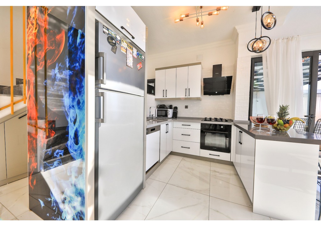 Detayları; Buzdolabı, Bulaşık makinesi, Fırın 4’lü Ocak (ankastre), Mikrodalga fırın, Elektrikli su ısıtıcı, 6 kişilik yemek takımı, Tava, Tencereler, Çatal bıçak vb.