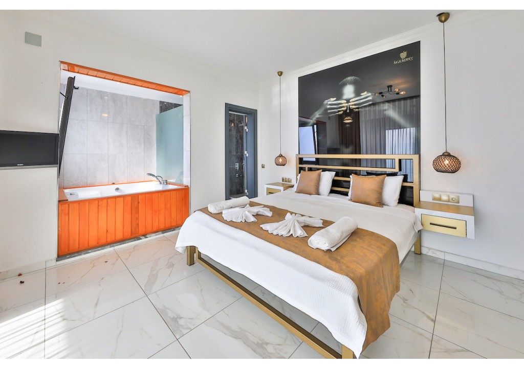 Detayları; Çift kişilik yatak, makyaj masası, komidin, klima, elbise dolabı, jakuzi, banyo ve tuvalet bulunmaktadır.