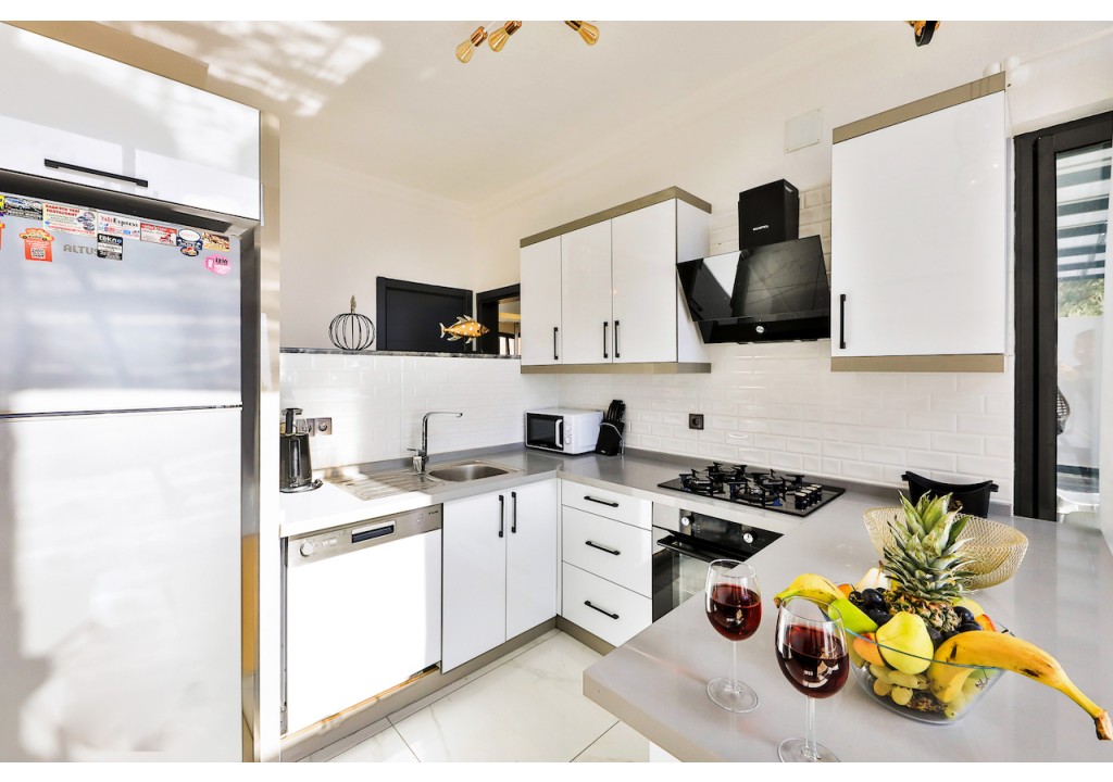 Detayları; Buzdolabı, Bulaşık makinesi, Fırın 4’lü Ocak (ankastre), Mikrodalga fırın, Elektrikli su ısıtıcı, 6 kişilik yemek takımı, Tava, Tencereler, Çatal bıçak vb.