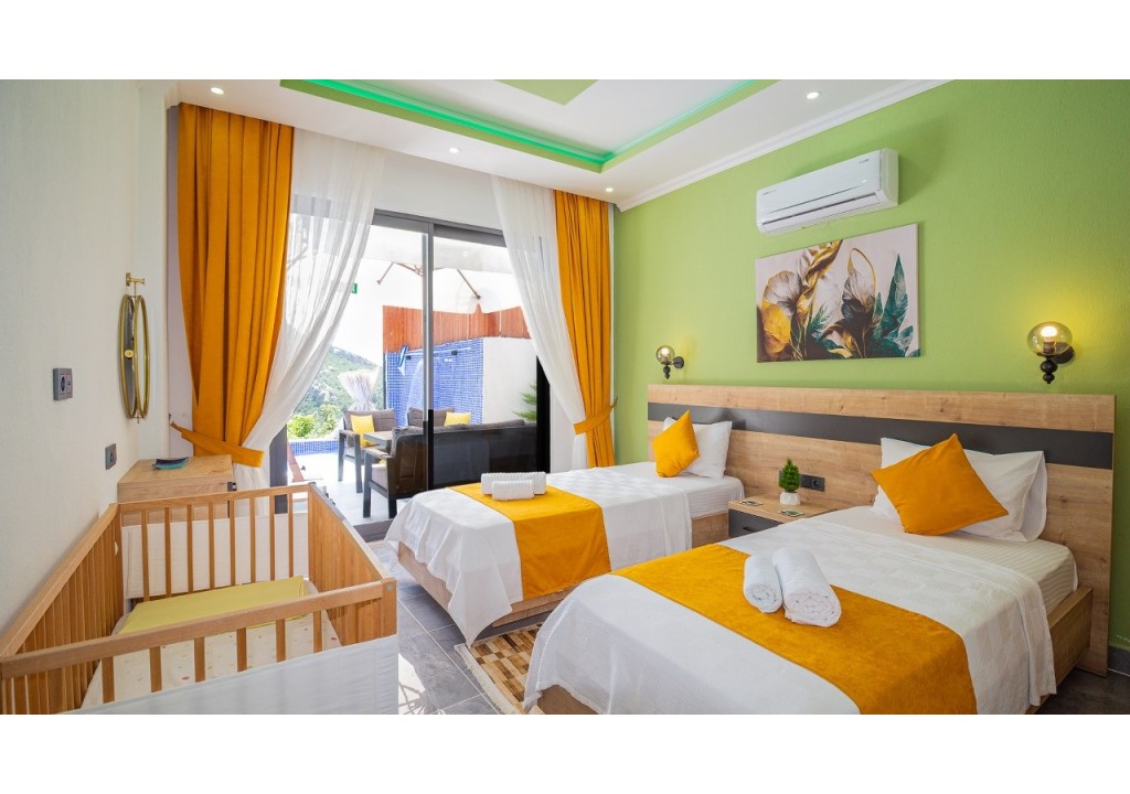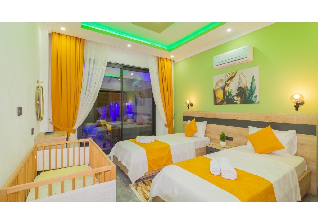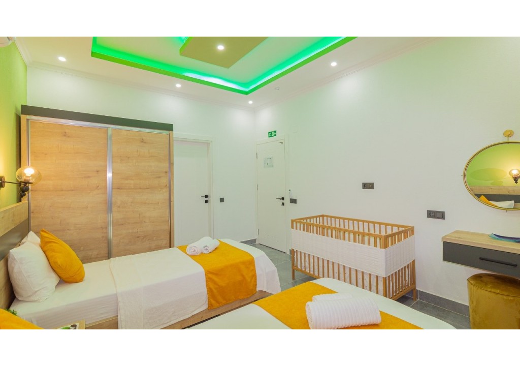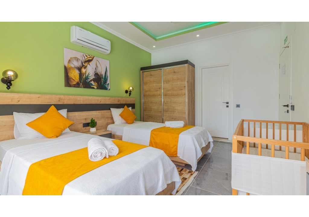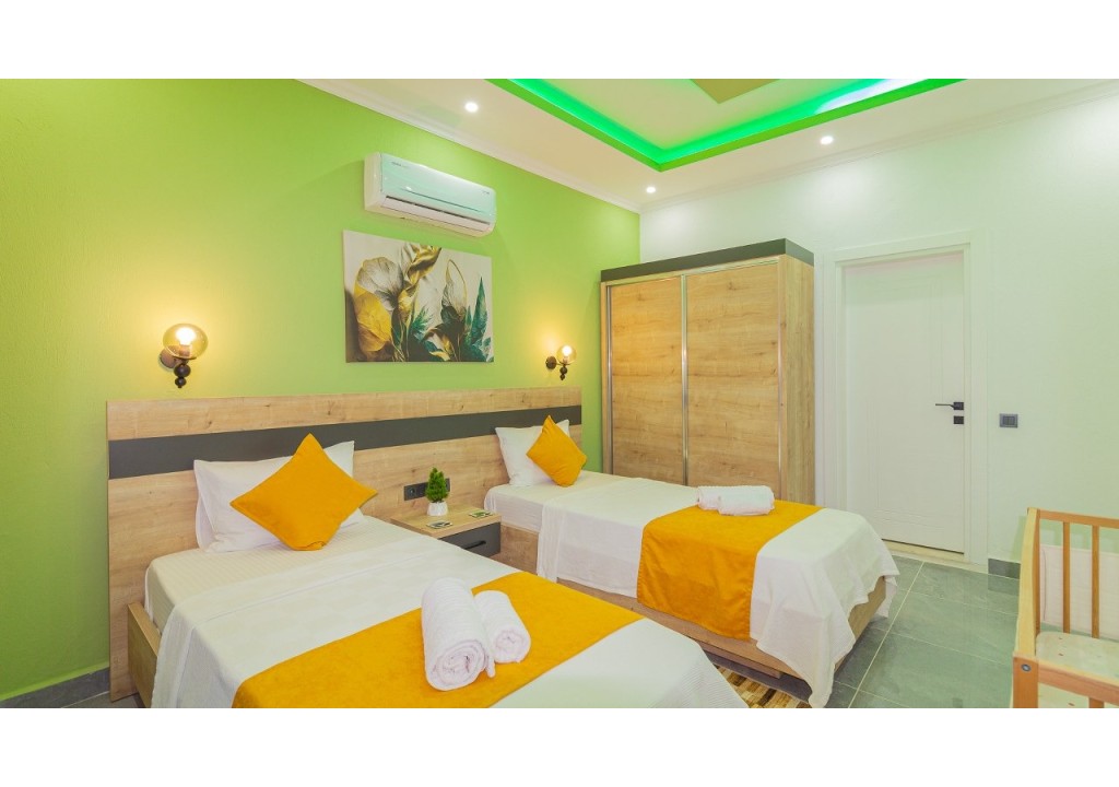 Detayları; İki adet tek kişilik yatak, makyaj masası, komidin, klima, elbise dolabı, banyo ve tuvalet bulunmaktadır.