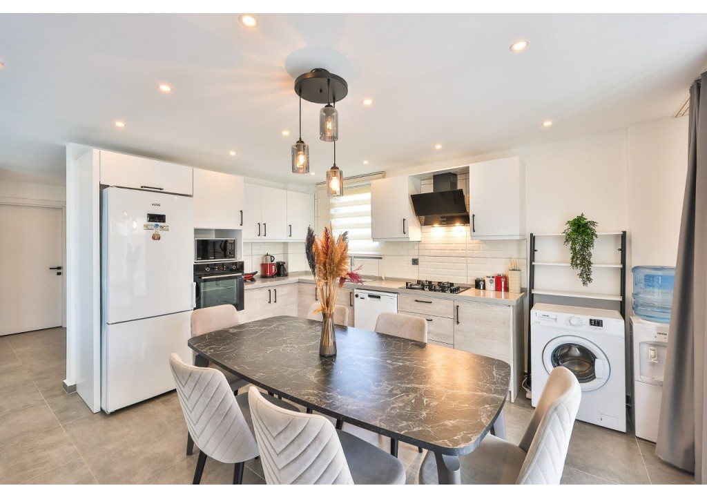 Detayları; Buzdolabı, Bulaşık makinesi, Fırın 4’lü Ocak (ankastre), Mikrodalga fırın, Elektrikli su ısıtıcı,6 kişilik yemek takımı, Tava, Tencereler, Çatal bıçak vb.