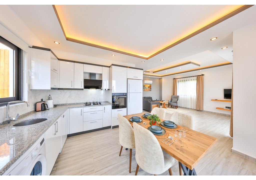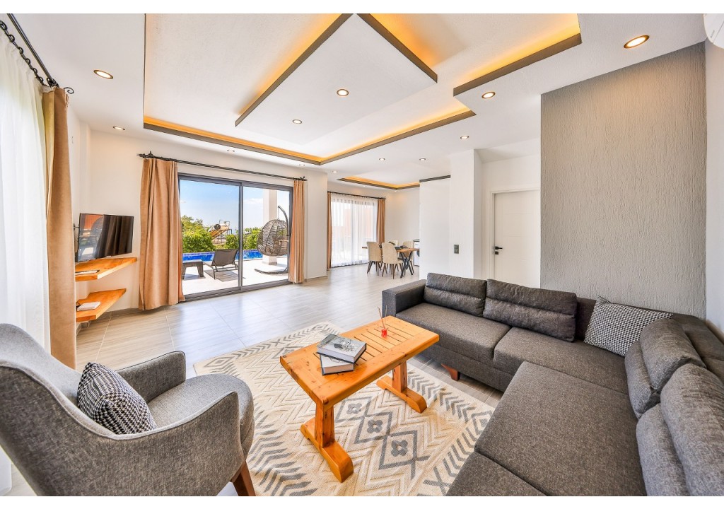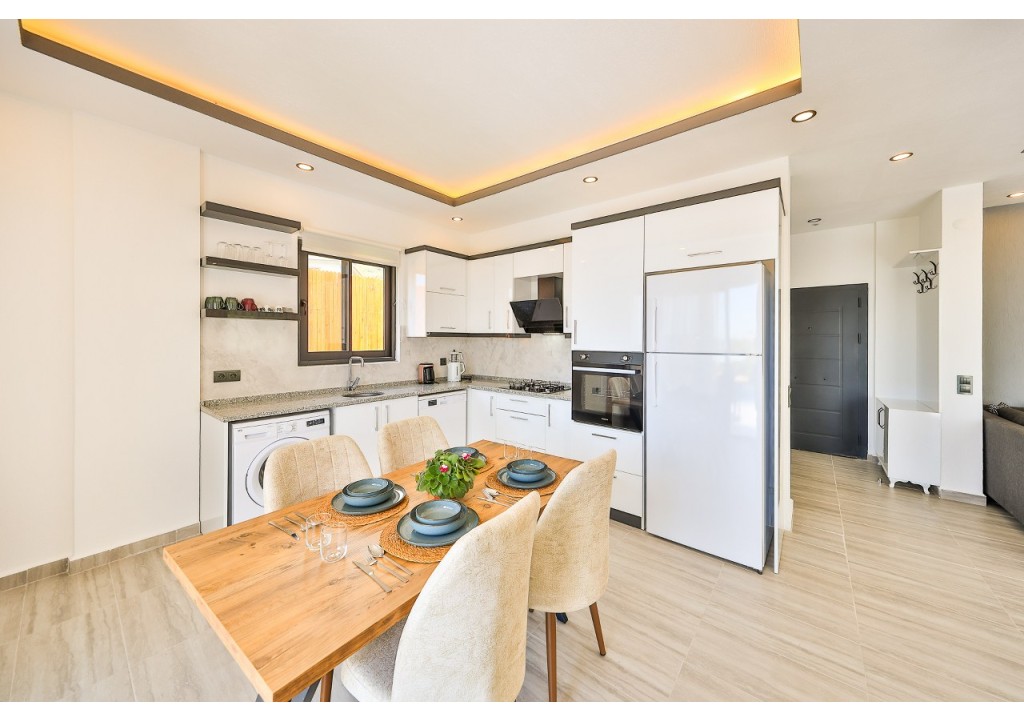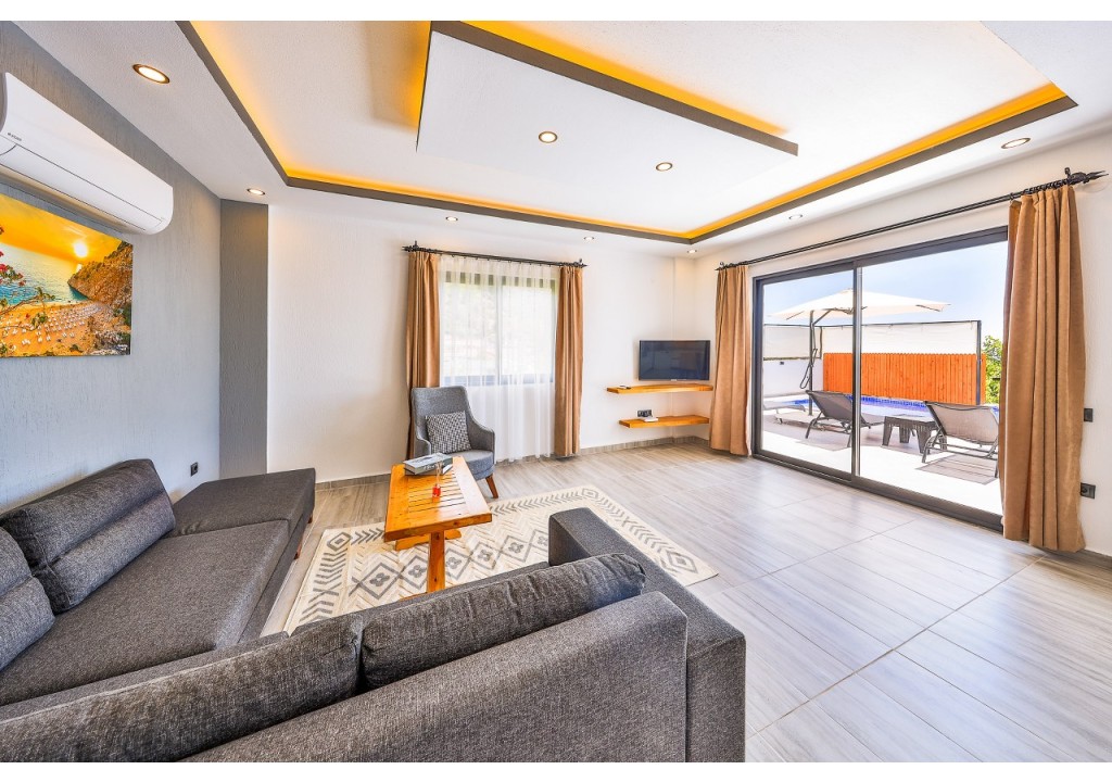 Detayları; Oturma grubu, Uydu TV (LCD), Klima, 4 kişilik yemek masası, Havuz terasına çıkış,