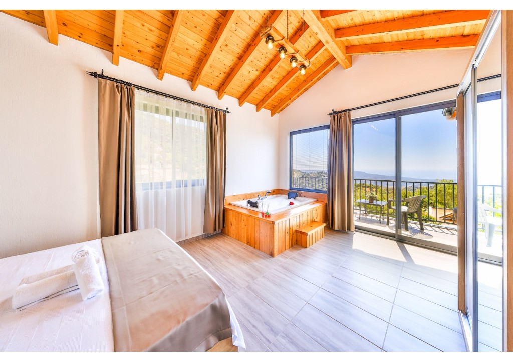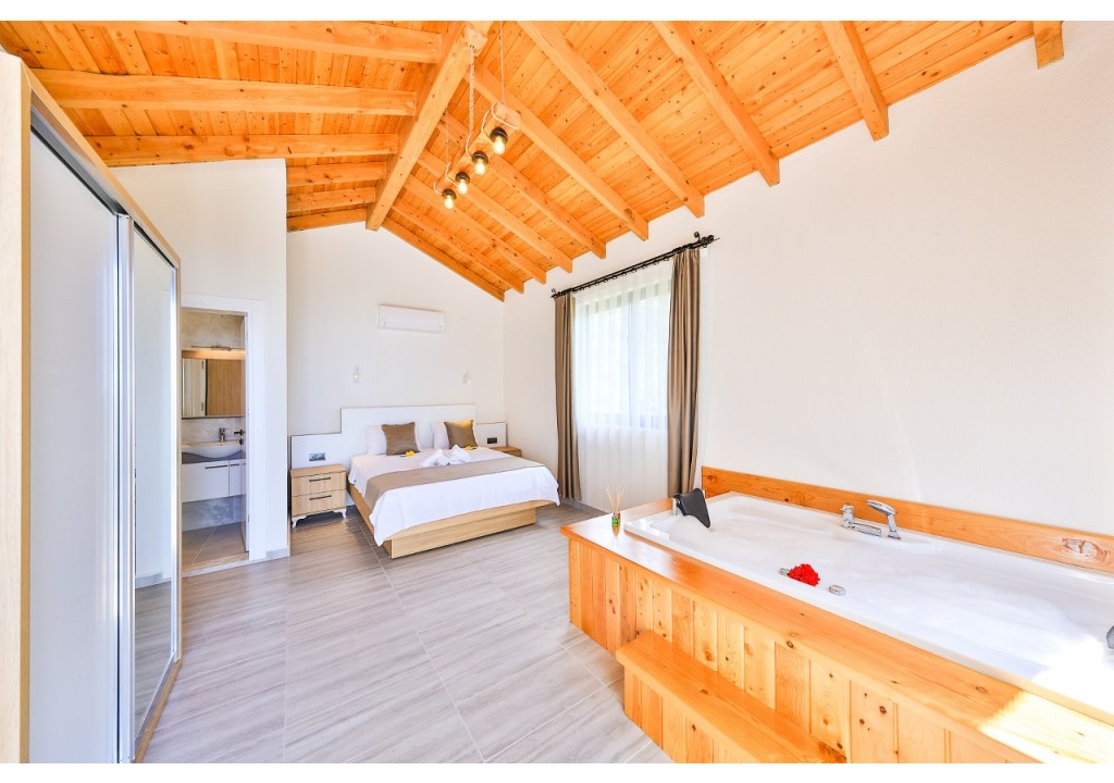 Detayları; Çift kişilik yatak makyaj masası, komodin, klima, elbise dolabı, jakuzi, banyo ve tuvalet bulunmaktadır.