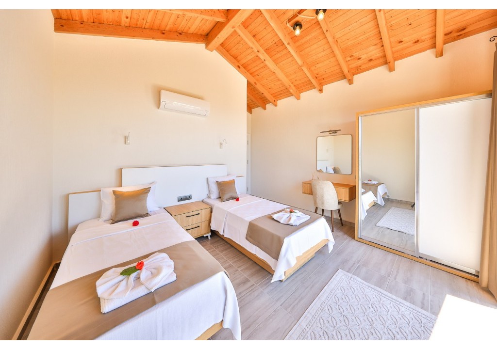 Detayları; İki adet tek kişilik yatak, makyaj masası, komodin, klima, elbise dolabı, banyo ve tuvalet bulunmaktadır.