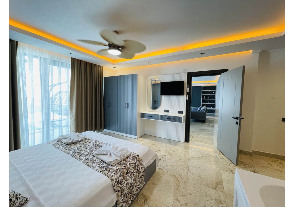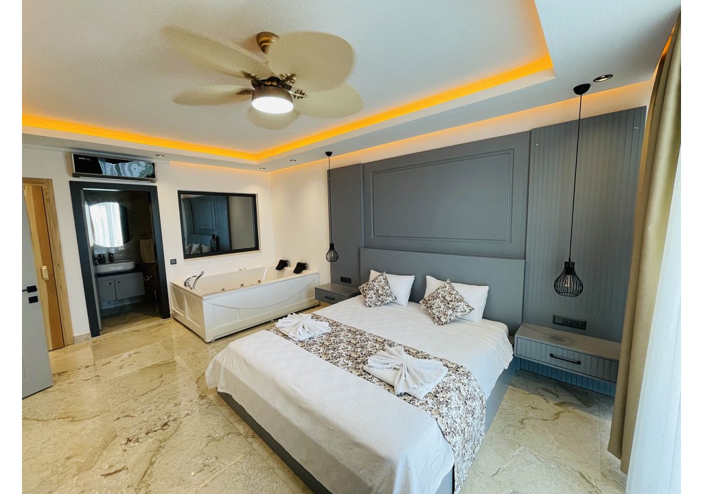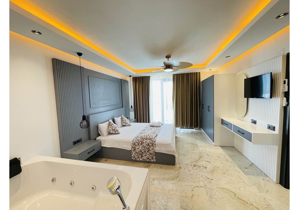 Detayları; Çift kişilik yatak, makyaj masası, komidin, klima, elbise dolabı, jakuzi, banyo ve tuvalet bulunmaktadır.
