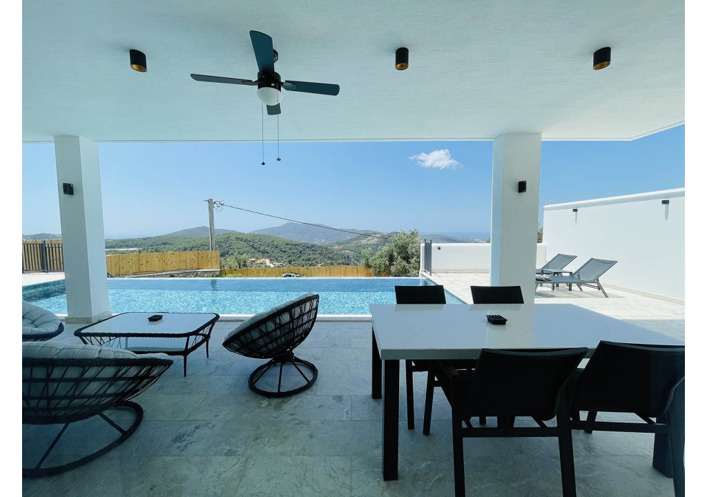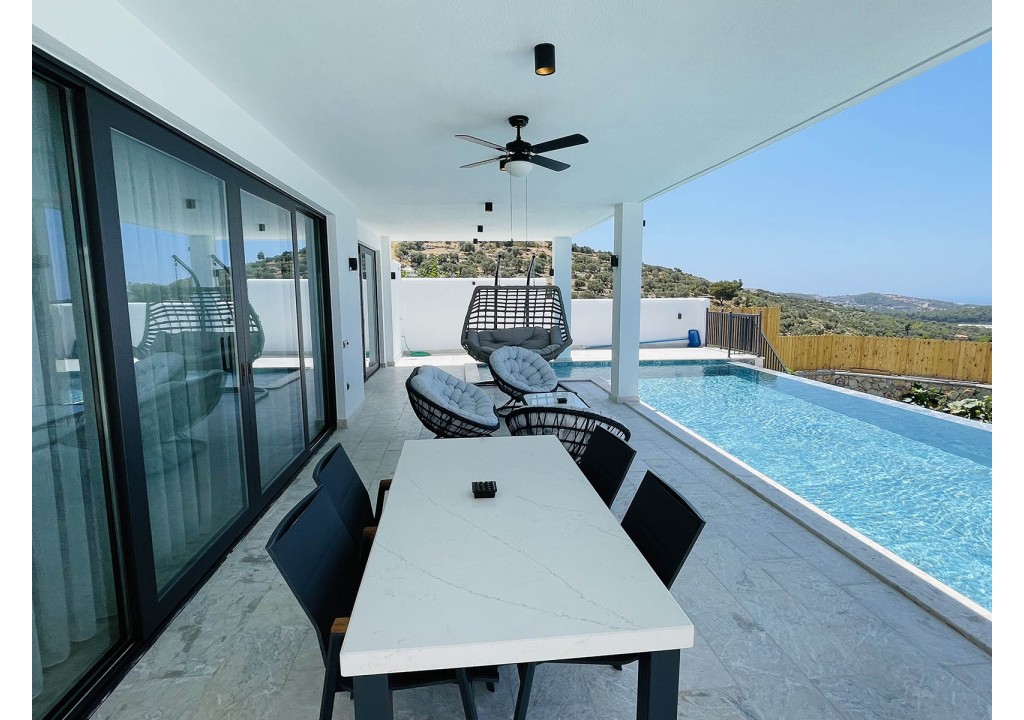Detayları; Oturma grubu, Uydu TV (LCD), Klima, 4 kişilik yemek masası, Havuz terasına çıkış