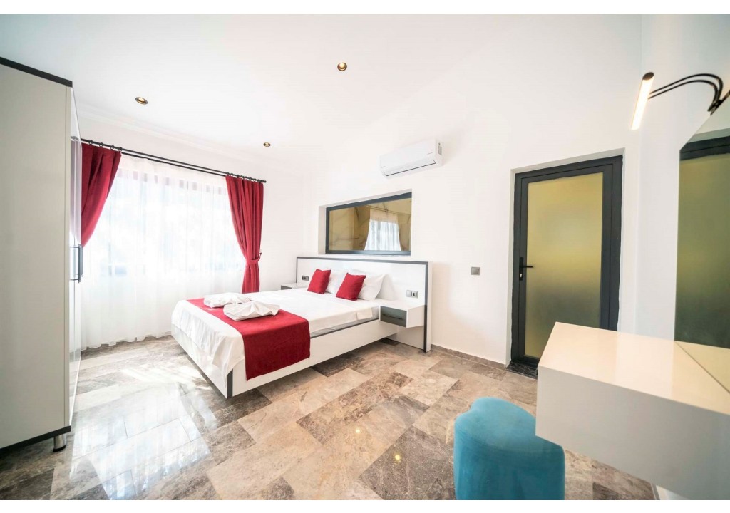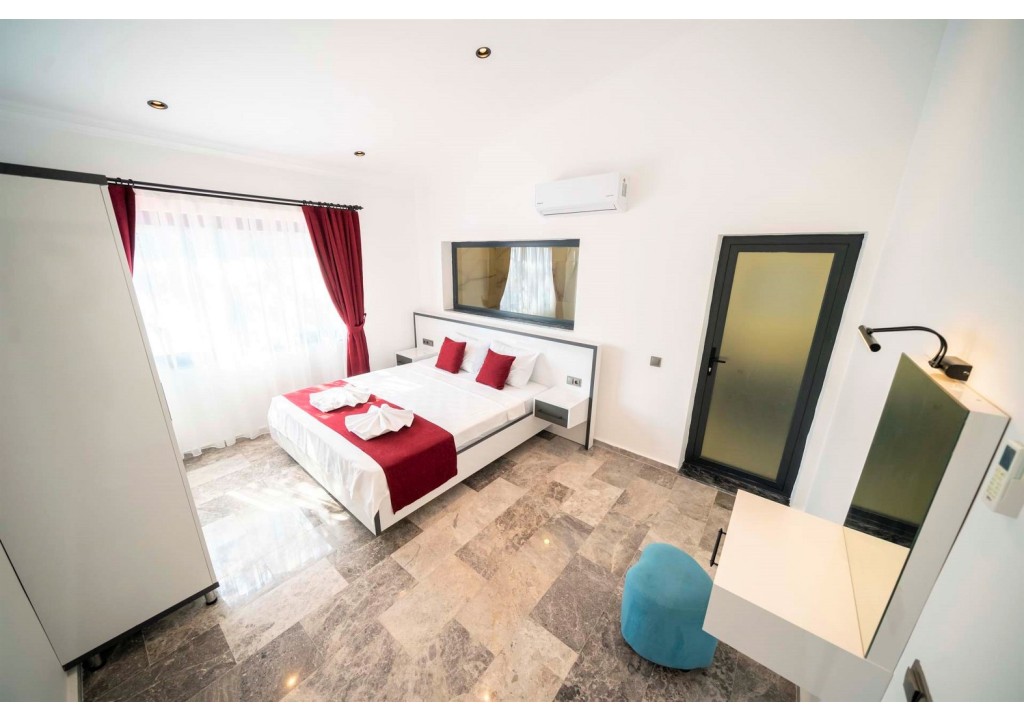 Detayları; Çift kişilik yatak, makyaj masası, komodin, klima, elbise dolabı, banyo ve tuvalet yer almaktadır.